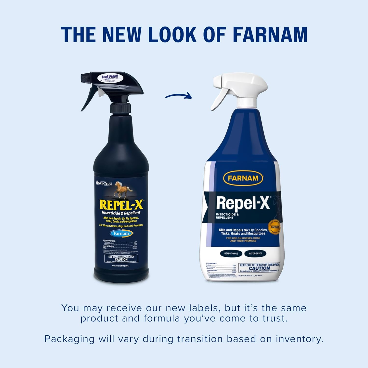 Farnam Repel-X Ready-To-Use Fly Spray, Insecticide And Repellent For Horses And Dogs, 32 Fluid Ounces, 1 Quart Bottle With Trigger Sprayer
