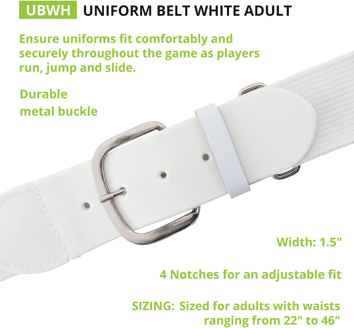 Champion Sports Baseball/Softball Uniform Belt, Comfort Stretch Fit Durable Syntex Tab - Youth & Adult Sizes, Multiple Colors