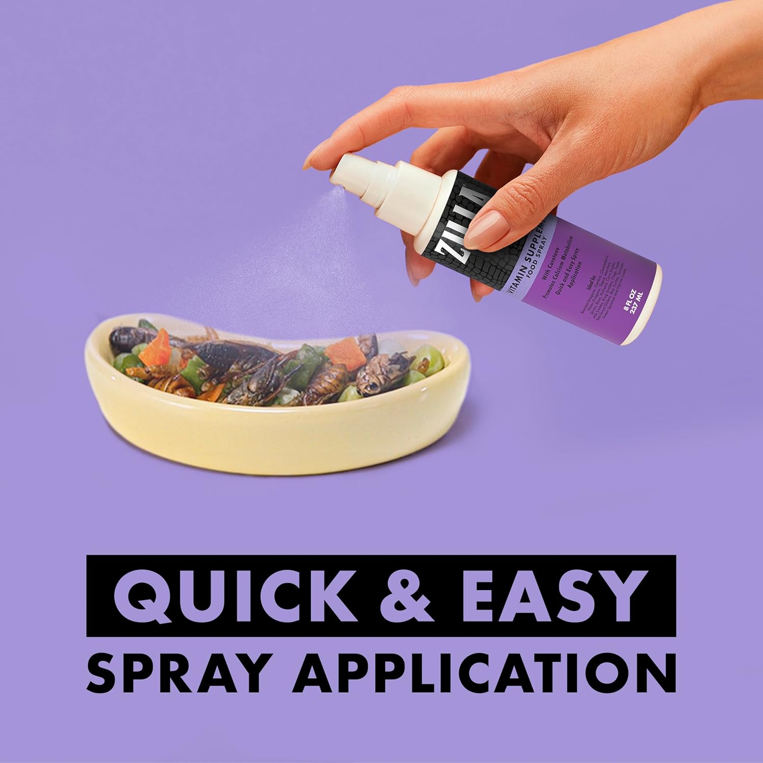 - QUICK AND EASY SPRAY APPLICATION, simply spray onto your reptile’s food and wait 15 seconds.