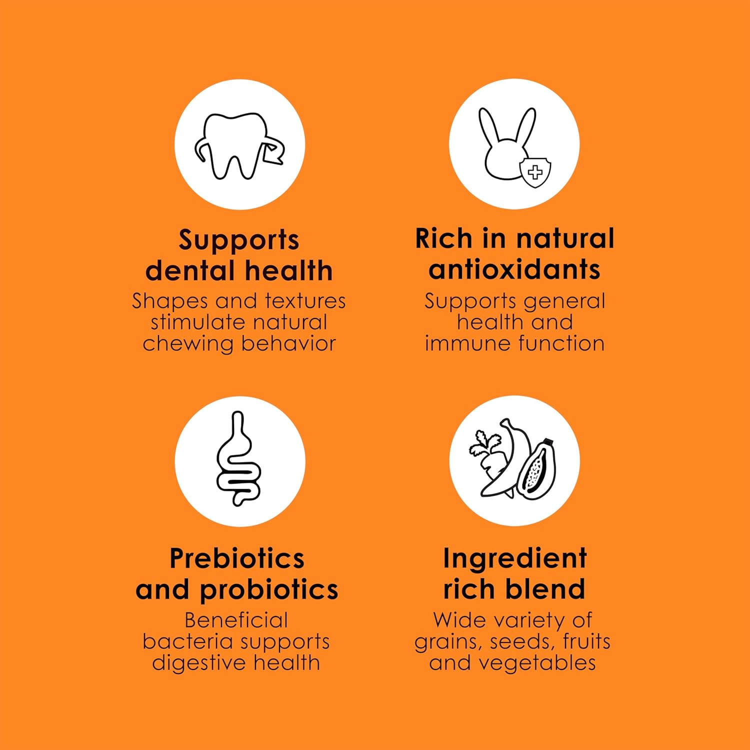 - SUPPORTS DENTAL HEALTH with a variety of shapes and textures, encouraging chewing activity.