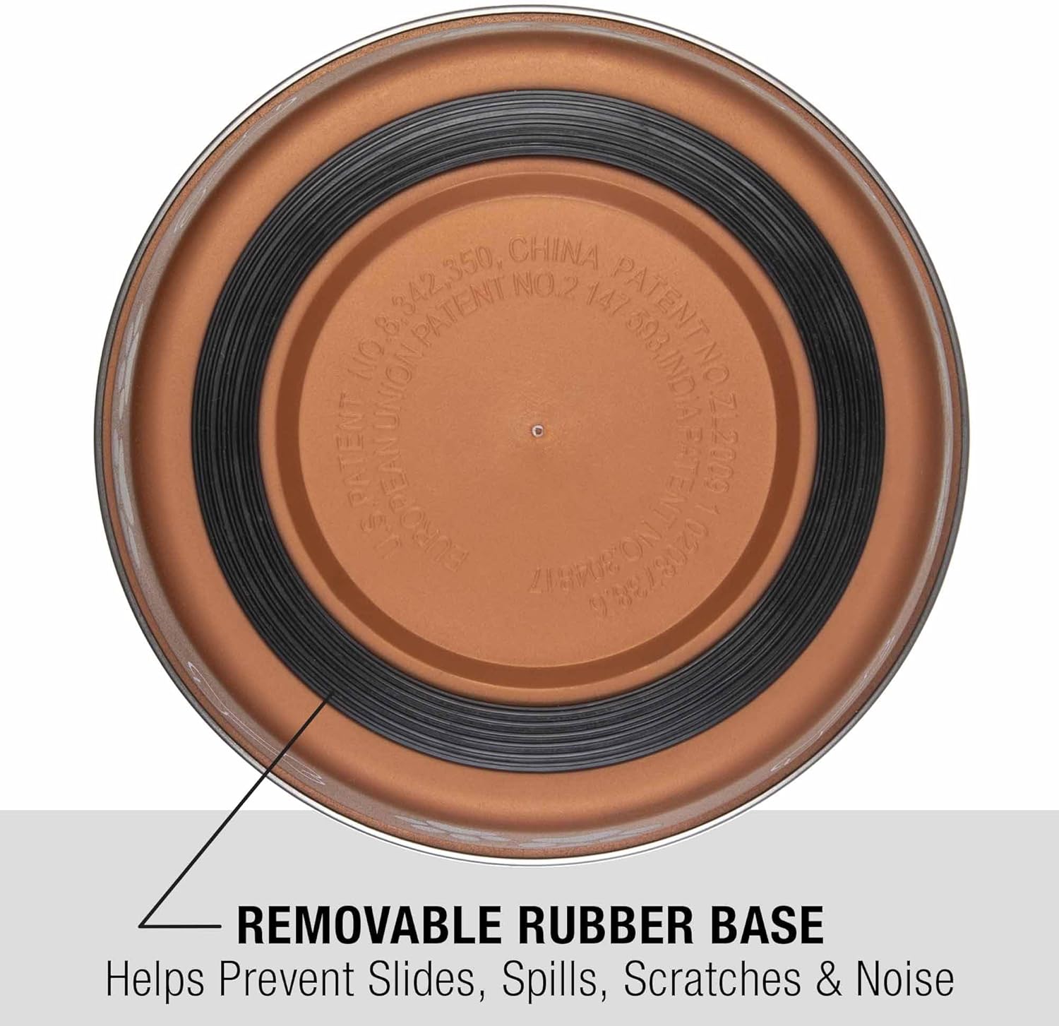 - Features a removable rubber base, helping prevent your dog from nosing their bowl all over the floor and causing noise or spills