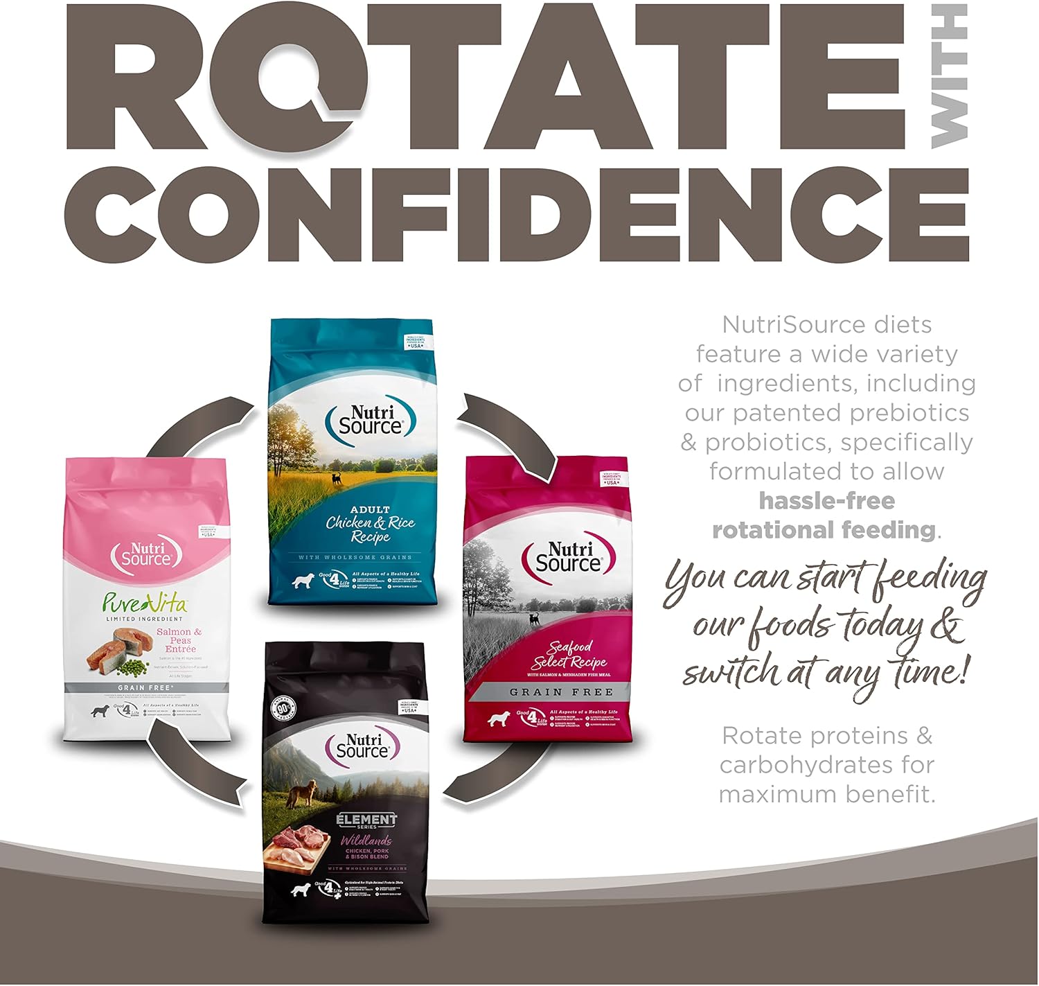 - As a member of our grain inclusive series of dog foods, NutriSource Senior Chicken & Rice Recipe is formulated to meet AAFCO guidelines for maintenance of adult dogs