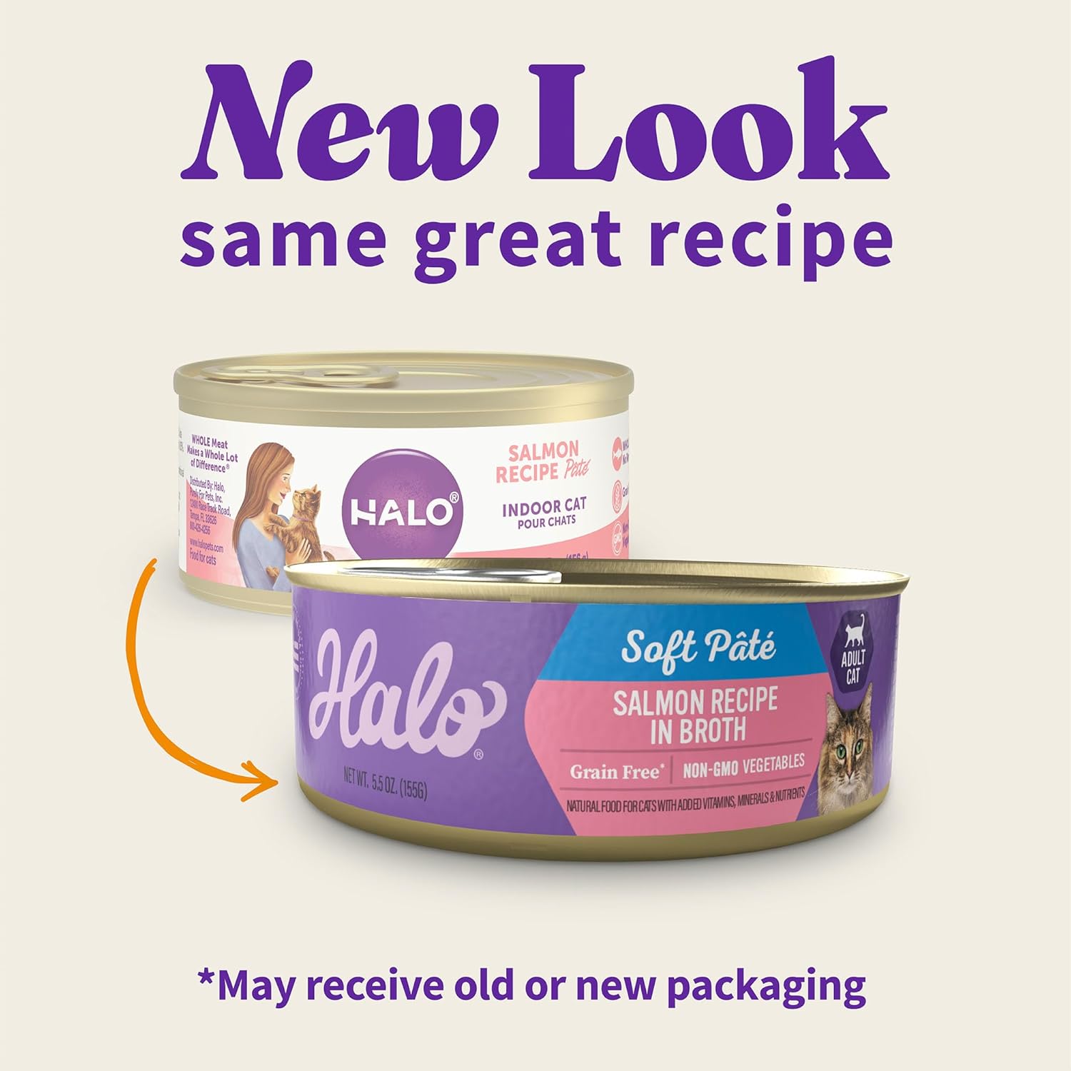 Halo Wet Cat Food Whole Salmon Stew Recipe, Grain Free Wet Cat Pate, Canned Cat Food for Extra Hydration, 5.5 Oz Can (Pack of 12)