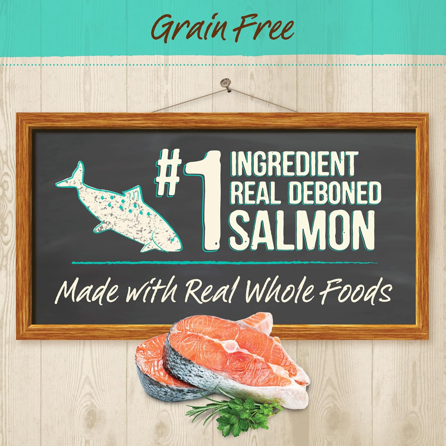 - Real deboned salmon is the first ingredient in this grain free cat dry food recipe