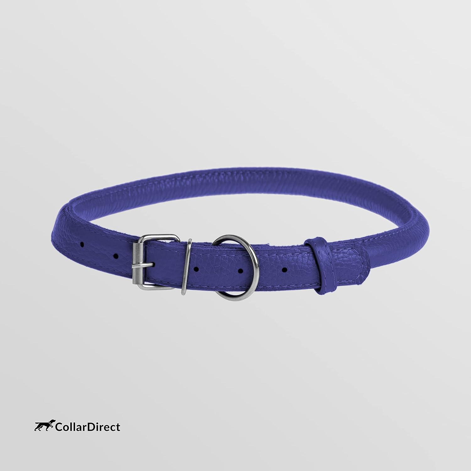 CollarDirect Rolled Leather Dog Collar, Soft Padded Round Puppy Collar, Handmade Genuine Leather Collar Dog Small Large Cat Collars 13 Colors (15-19 Inch, Purple Textured)