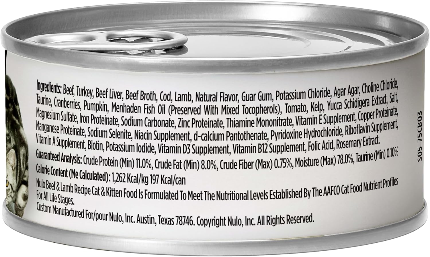 Nulo Beef & Lamb Recipe Pate Wet Canned Cat Food, 5.5 Ounce (Pack of 24)