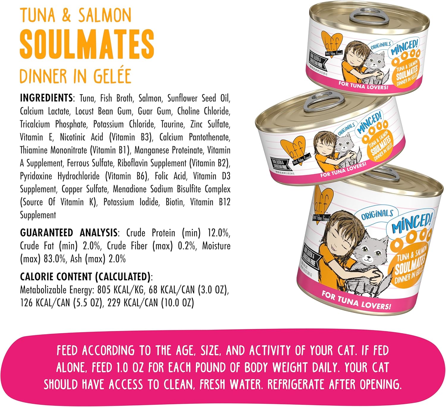 Weruva BFF Minced Natural Wet Cat Food, Tuna and Salmon Soulmates in Gelee, 3oz Can, Pack of 24