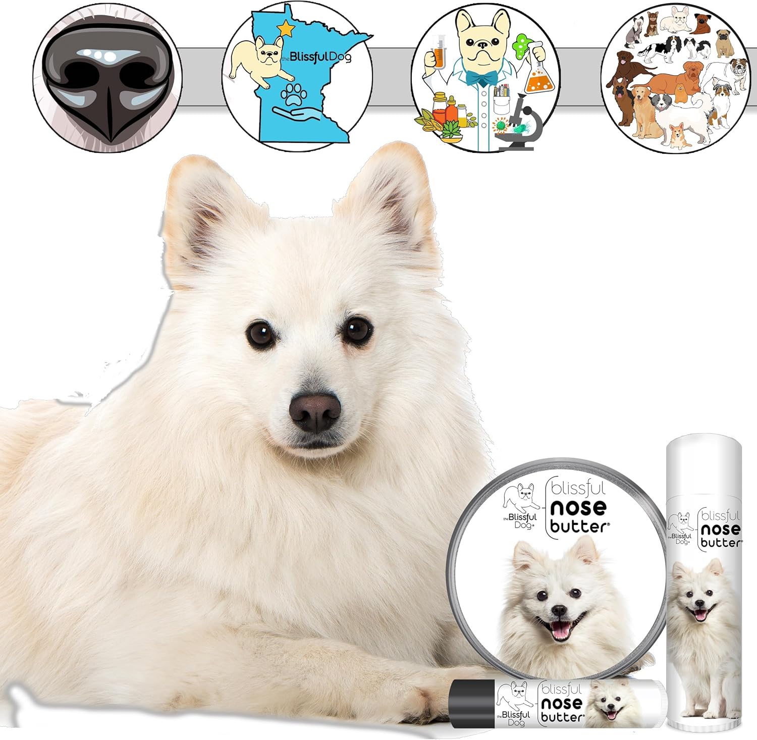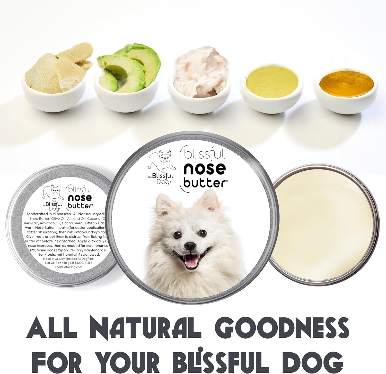 The Blissful Dog American Eskimo Nose Butter for Dry, Cracked Skin, Lick-Safe Dog Nose Balm with Moisturizing Shea Butter, Almond, Olive, and Essential Oils, Pet Supplies, Uncented, 4 oz.