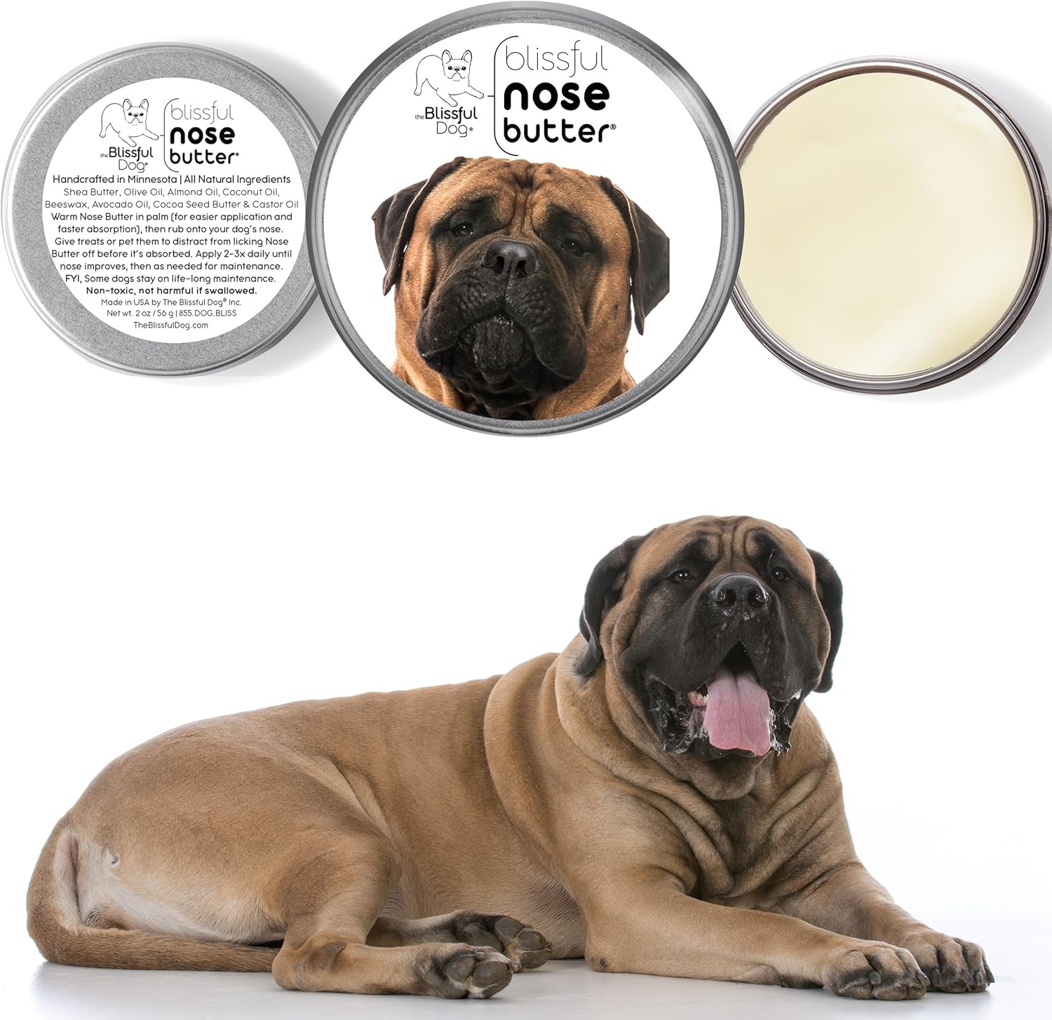 The Blissful Dog Bullmastiff Nose Butter for Dry, Cracked Skin, Lick-Safe Dog Nose Balm with Moisturizing Shea Butter, Almond, Olive, and Essential Oils, Pet Supplies, Uncented, 1 oz.