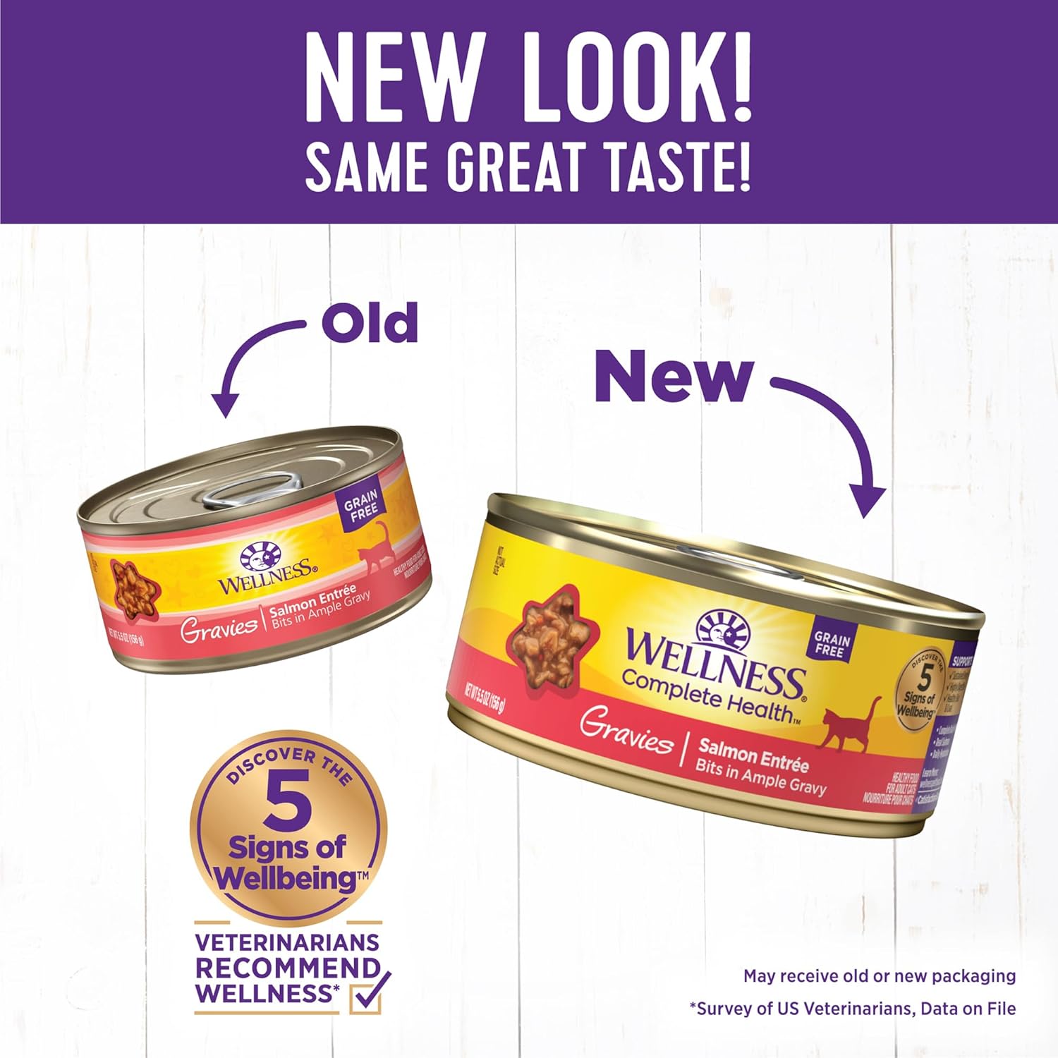 Wellness Complete Health Gravy Adult Wet Cat Food, Natural, Protein-Rich, Grain Free, 5.5 Ounce, 12 Pack, (Salmon Entree)