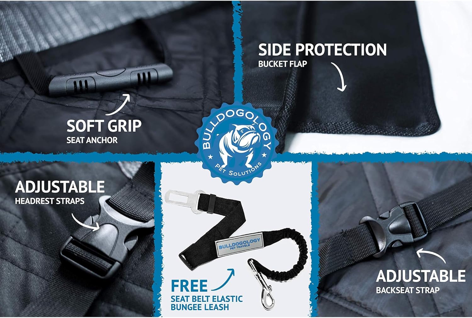 Bulldogology Front Car Seat Covers for Dogs - Heavy Duty Dog Seat Cover for Cars, Trucks, Vans, and SUVs - 100% Waterproof Front Seat Dog Cover - Passenger Dog Car Seat Cover for Front Seat (Black)