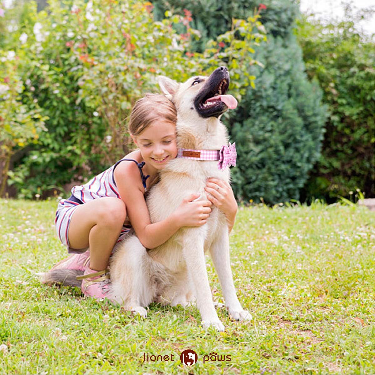Lionet Paws Dog Collar with Bowtie, Comfortable Adjustable Cute Pink Gingham Bow Tie Collar for Female Dogs Gift, Small, Neck 10-16 inches