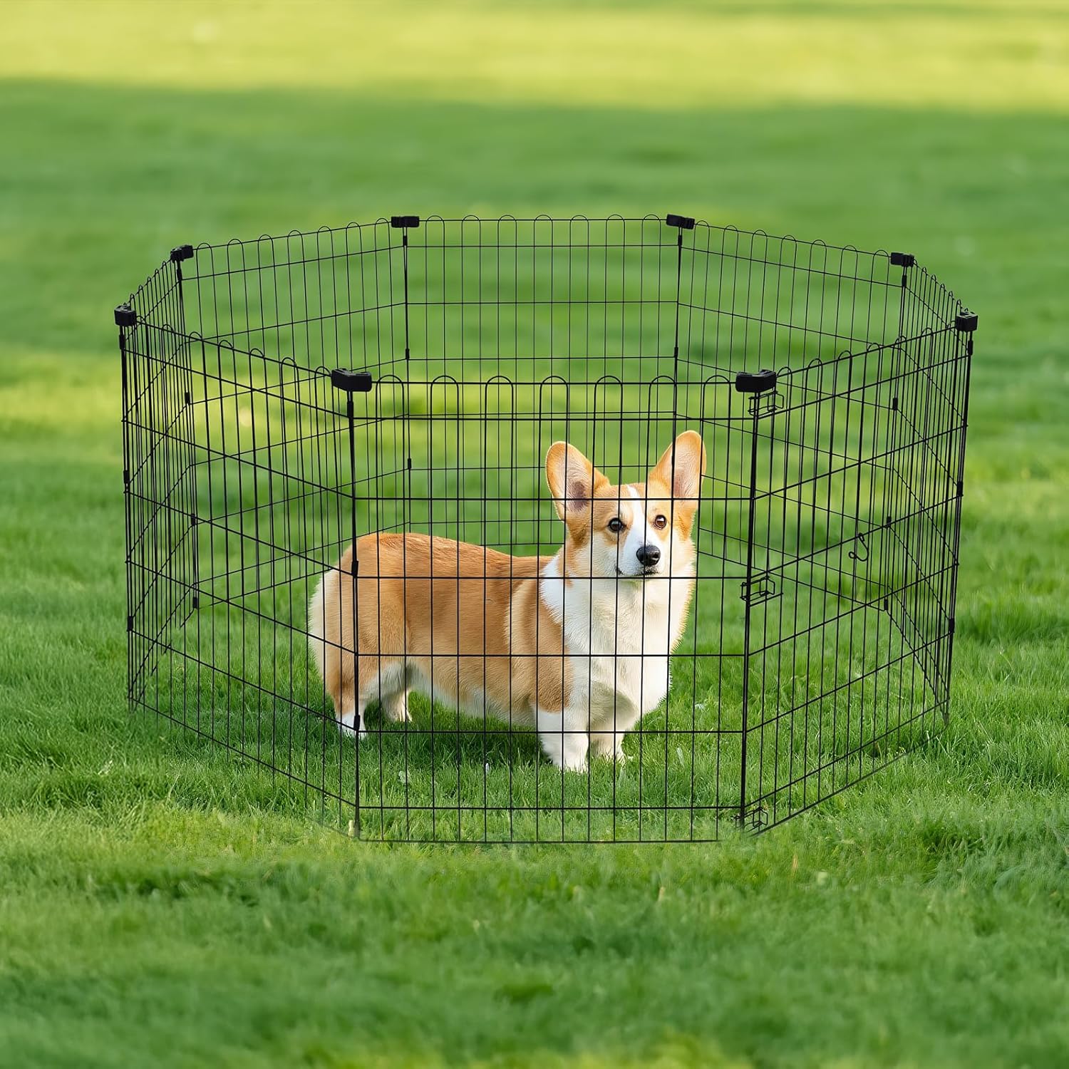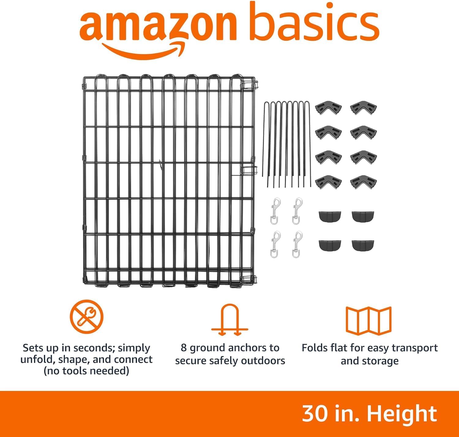 Amazon Basics Foldable Octagonal Metal Exercise Dog Playpen - Indoor/Ou, , Blacktdoor, No Door, Small (8 Panels, 24 x 30), Easy to assemble, store, and customize, 30" - Small, Black