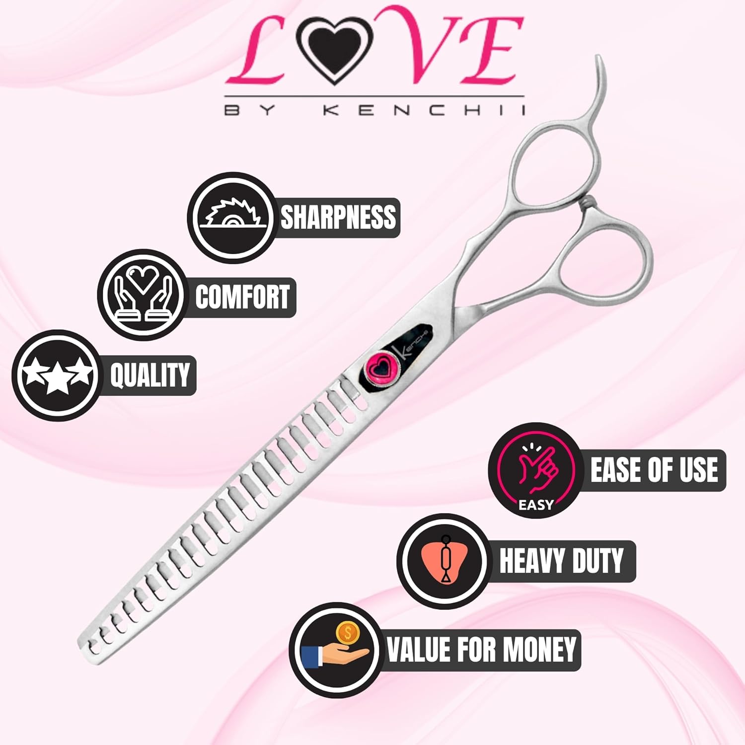 Kenchii Love Dog Grooming Scissors, 22 Tooth Blender Shears, Dog Scissors for Grooming, Professional Pet Grooming Scissors, Heavy Duty, Durable and Sharp