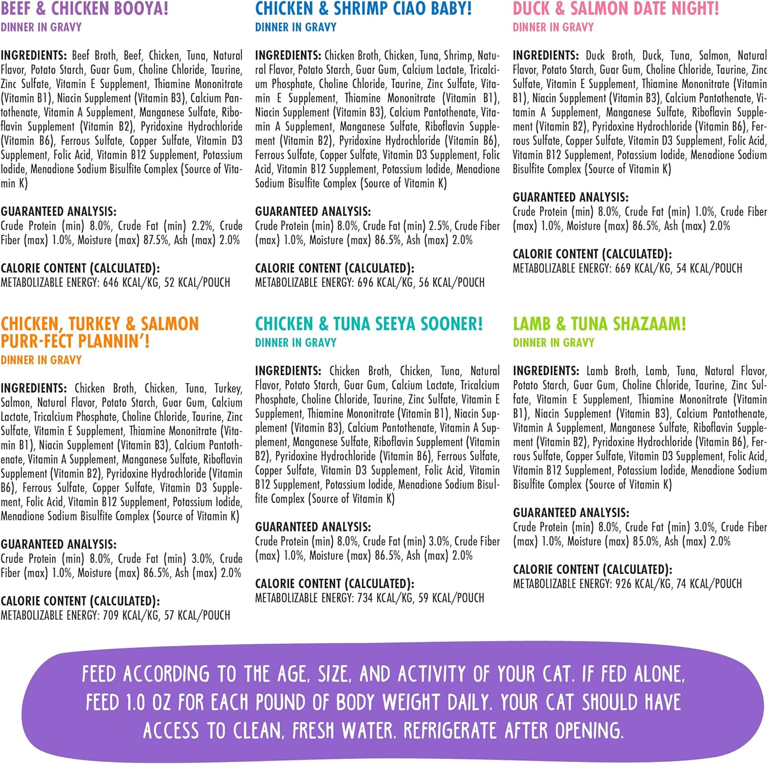 - B.F.F. OMG - Your Best Feline Friend will love these extra juicy flavors. Oh my Gravy!