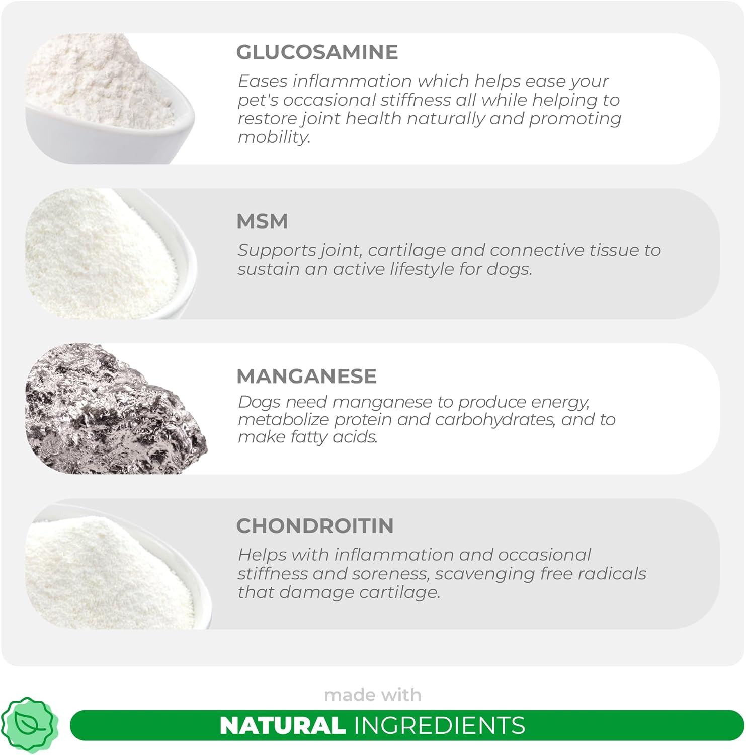 Joint Supplement for Dogs - 120 Chewable Tablets - with Glucosamine, Chondroitin, MSM and Manganese for Hip, Tissue, and Mobility Support, Dog Joint Pain Relief