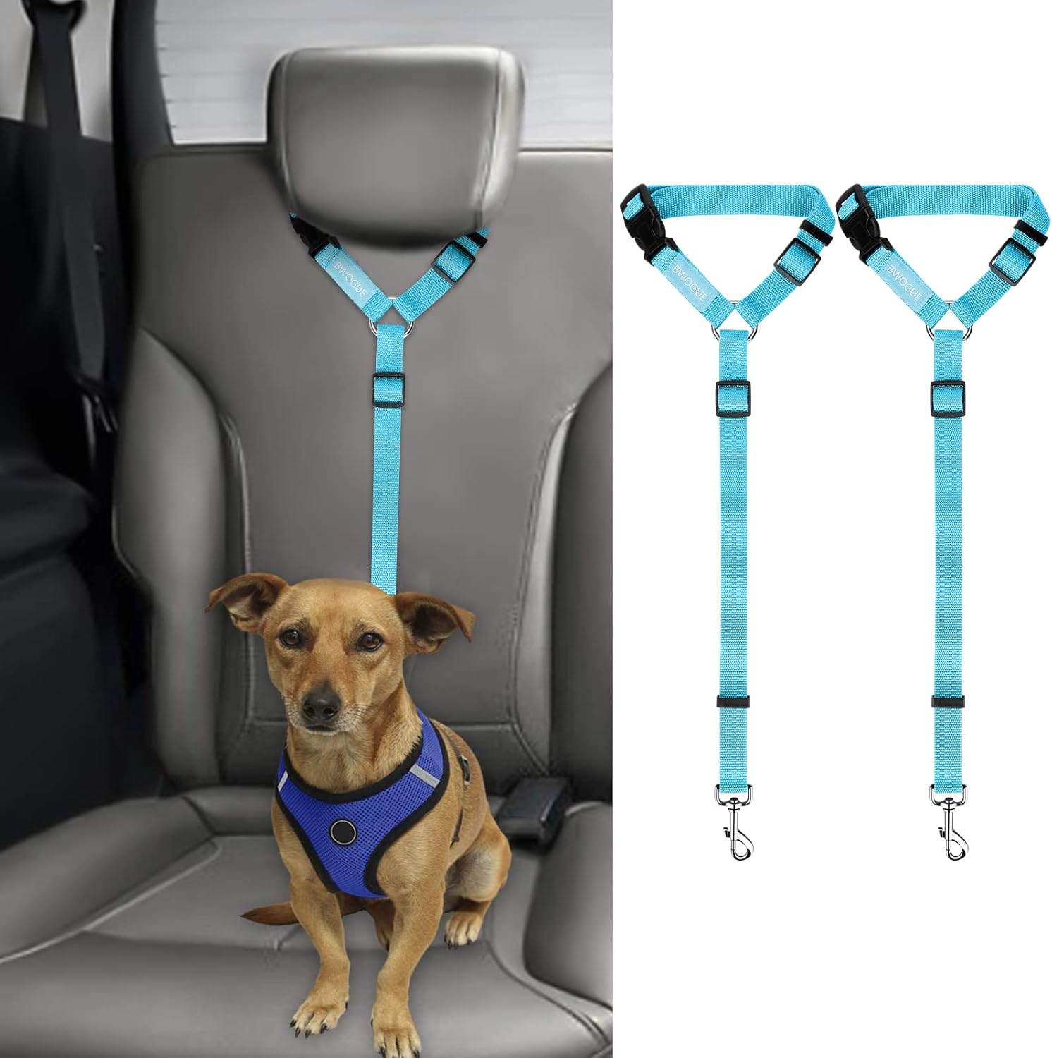 BWOGUE 2 Packs Dog Cat Safety Seat Belt Strap Car Headrest Restraint Adjustable Nylon Fabric Dog Restraints Vehicle Seatbelts Harness