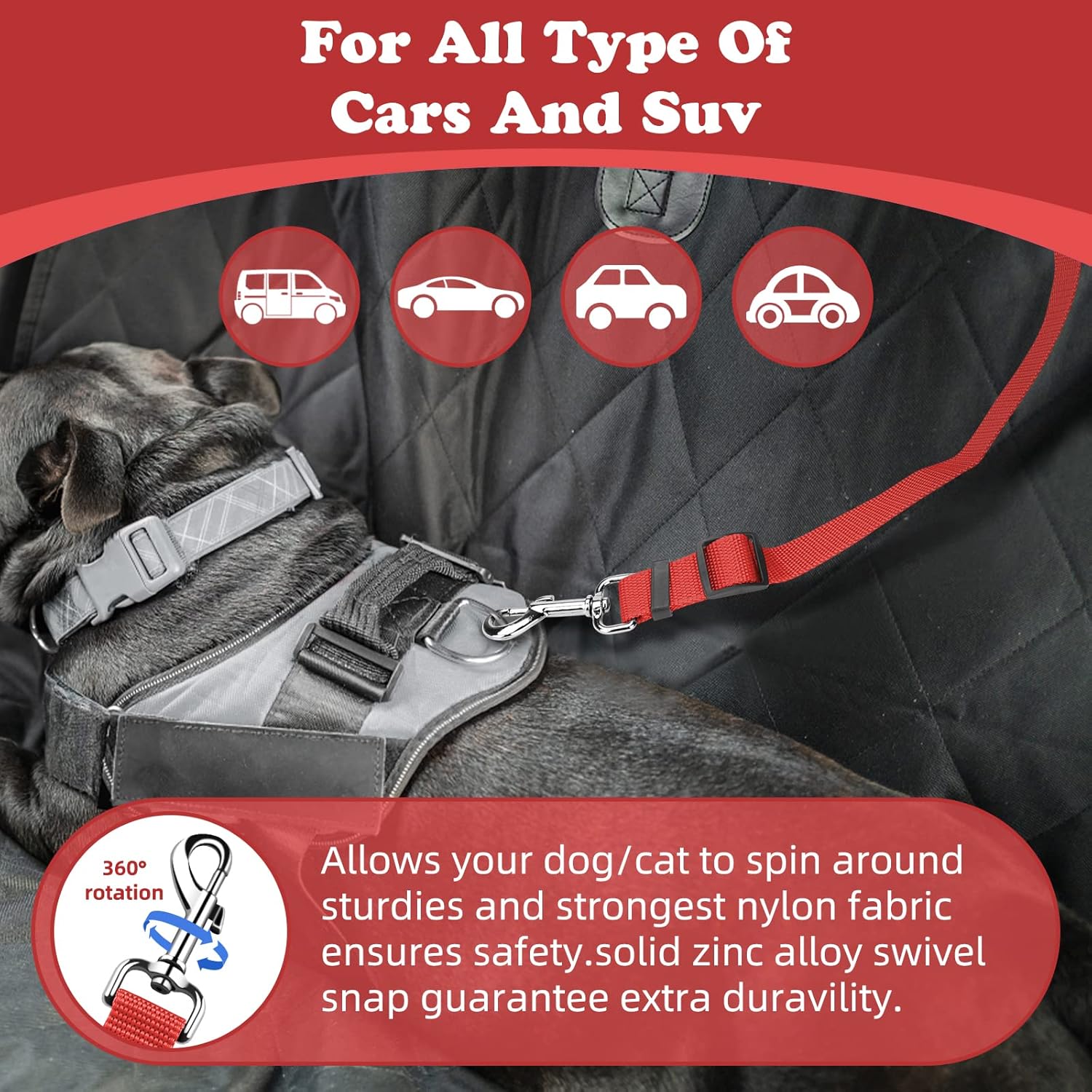 - HIGH QUALITY: Made of high quality nylon fabric to ensure safety, features the solid zinc alloy swivel snap and quality buckles, the pet car seat belt ensures the most safest traveling for your pet, and provides a most relaxing driving experience for you.
