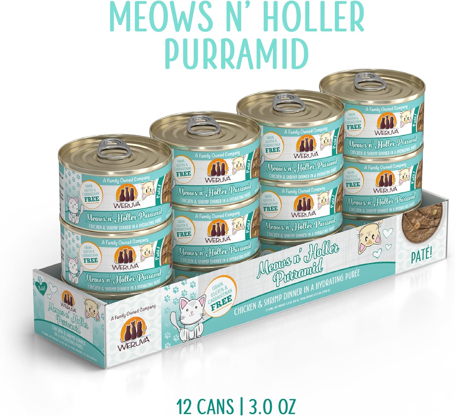 Weruva Wet Cat Food, Meows n Holler PurrAmid with Chicken and Shrimp Pate, 3oz Can, Pack of 12