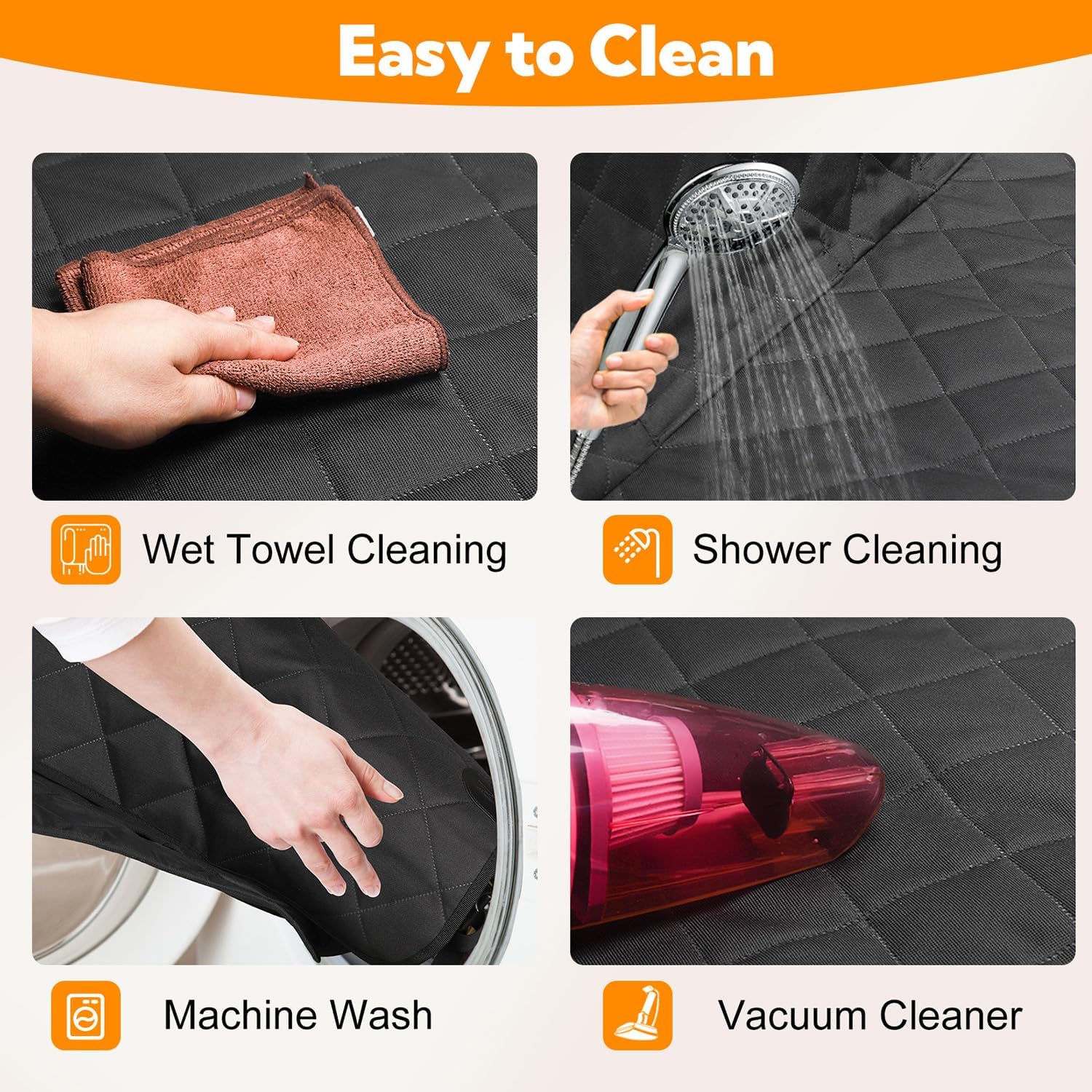 - â ăSAFE & COMFORTABLE MATERIALSăDurable 600D Oxford fabric + A grade PP cotton + Heavy-Duty Waterproof + Anti-Slip PVC net to keep the car back seat pet protector in place even on leather seats and help your dogs stay in place cozily. All the 3 sides are filled with cotton, makes it soft and comfortable