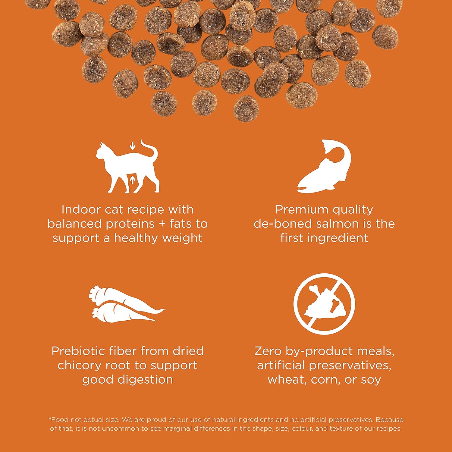 - DESIGNED FOR INDOOR CATS: Our GO! SOLUTIONS SKIN + COAT CARE Salmon Recipe is a premium-quality indoor cat food formulated with balanced proteins + fats to support a healthy weight.
