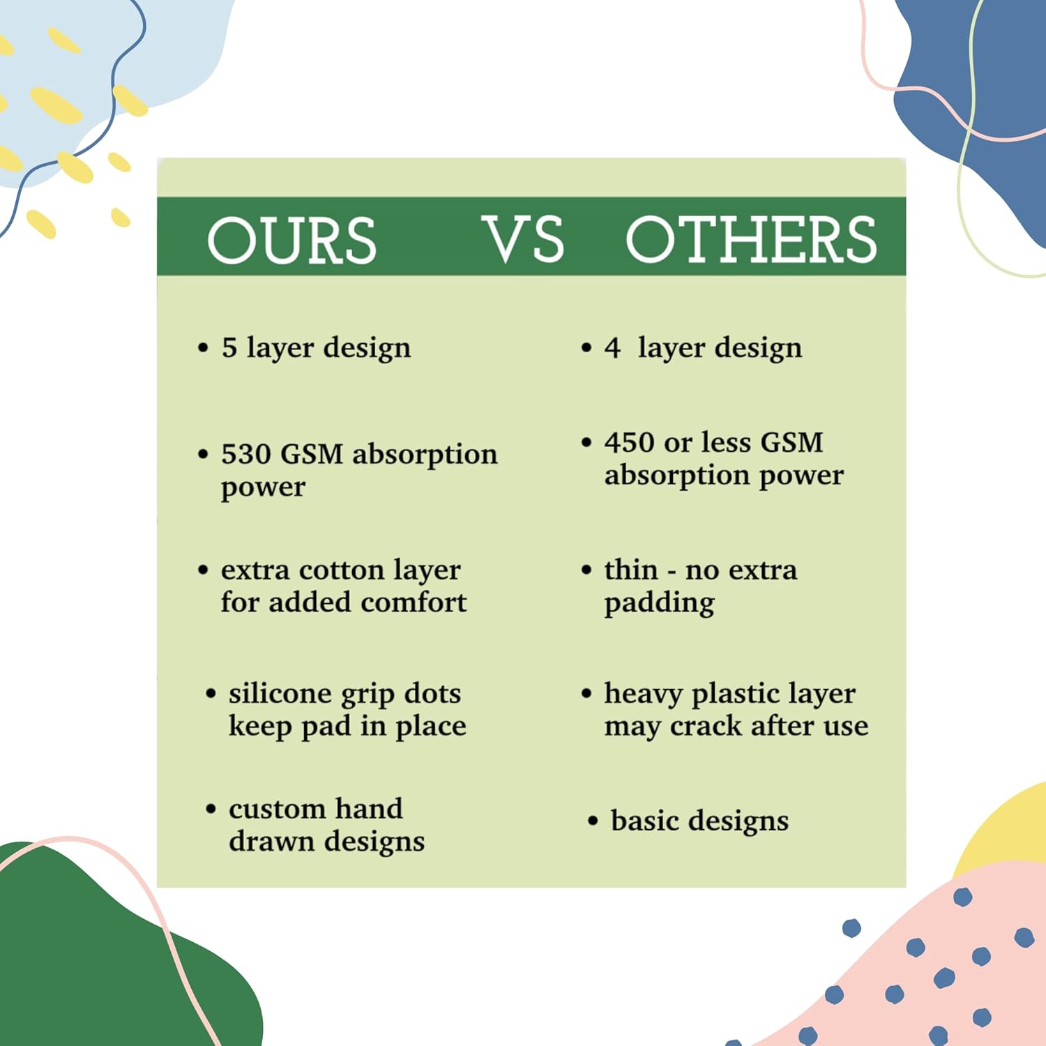 - Highly Absorbent: Our 5 layer washable puppy pads are soft and highly absorbent. Perfect as wee wee pads for dogs, reusable dog training pads, and reusable dog pee pads.