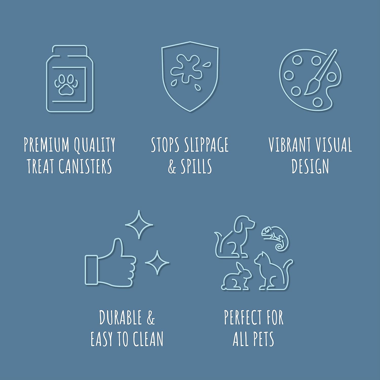 - KEEPS FOOD FRESH: The heavyweight canister avoids slipping, sliding, or tipping over, with an airtight silicone seal that blocks moisture to keep food dry, fresh, and delicious for longer. Perfect for storing your pet’s tasty treats or your own gourmet goodies!