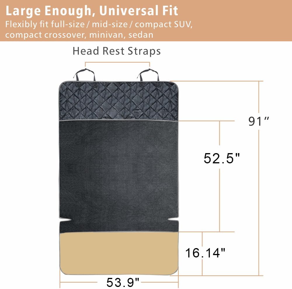 - Water Resistant Cargo Liner: 4 water-resistant layers quilted, WATER RESISTANT and protects your car seat from pet dander, hair, spills, oders, mud and water; Easy to clean just by wiping away dirt or vacuuming, washable. Tips: If there's a pee accident, please clean immediately.