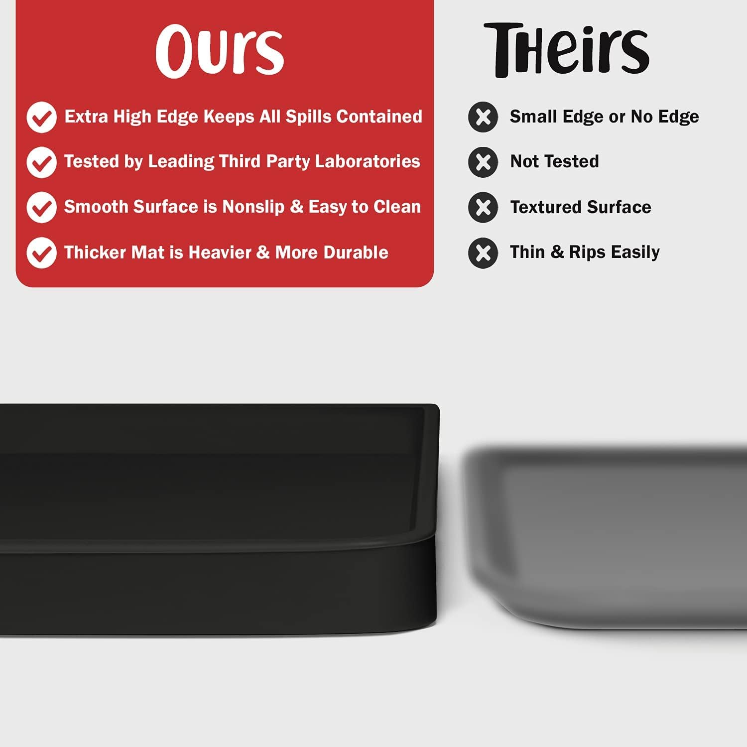 - Less Mess & Less Stress: Super high edge (0.6β) of DogBuddy Dog Food Mat keeps the spilled food and water on the mat and away from your beautiful floor. Silicone is naturally 100% waterproof, so what happens on the mat stays on the mat.
