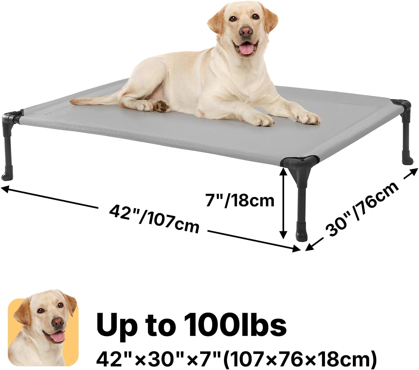 Veehoo Outdoor Elevated Dog Cot Bed, Cooling Raised Pet Bed for Large Dogs, Washable Breathable Mesh Hammock Bed with No-Slip Feet, Indestructible Ground Off Training Platform Cot-42"x30" Grey