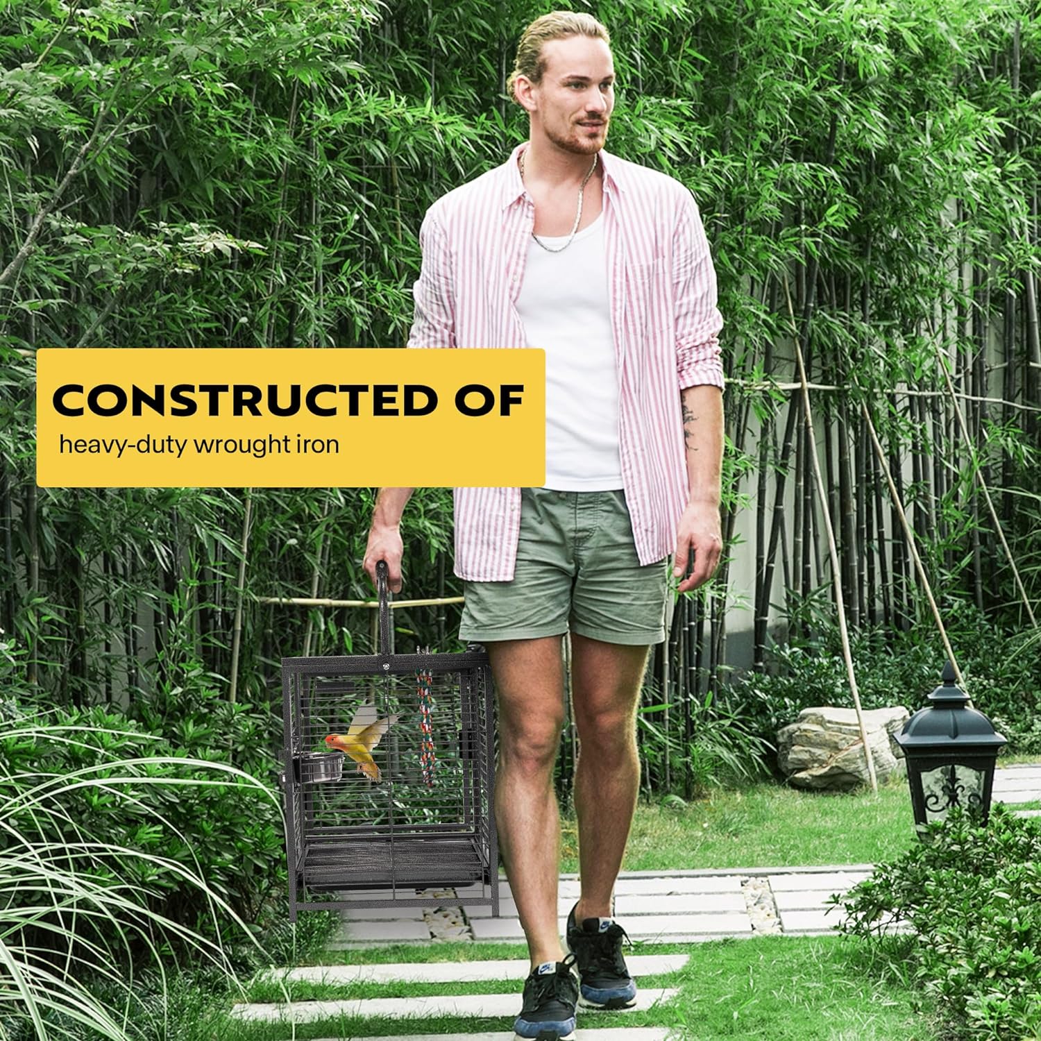 - PORTABLE AND LIGHTWEIGHT - This bird cage is just 14 lbs., which is lightweight and easy for you to carry for short-term traveling; The compact design allows you to store it with less used space; Product Dimensions: 18.9" (L) × 15" (W) × 18.7" - 25.6" (H)