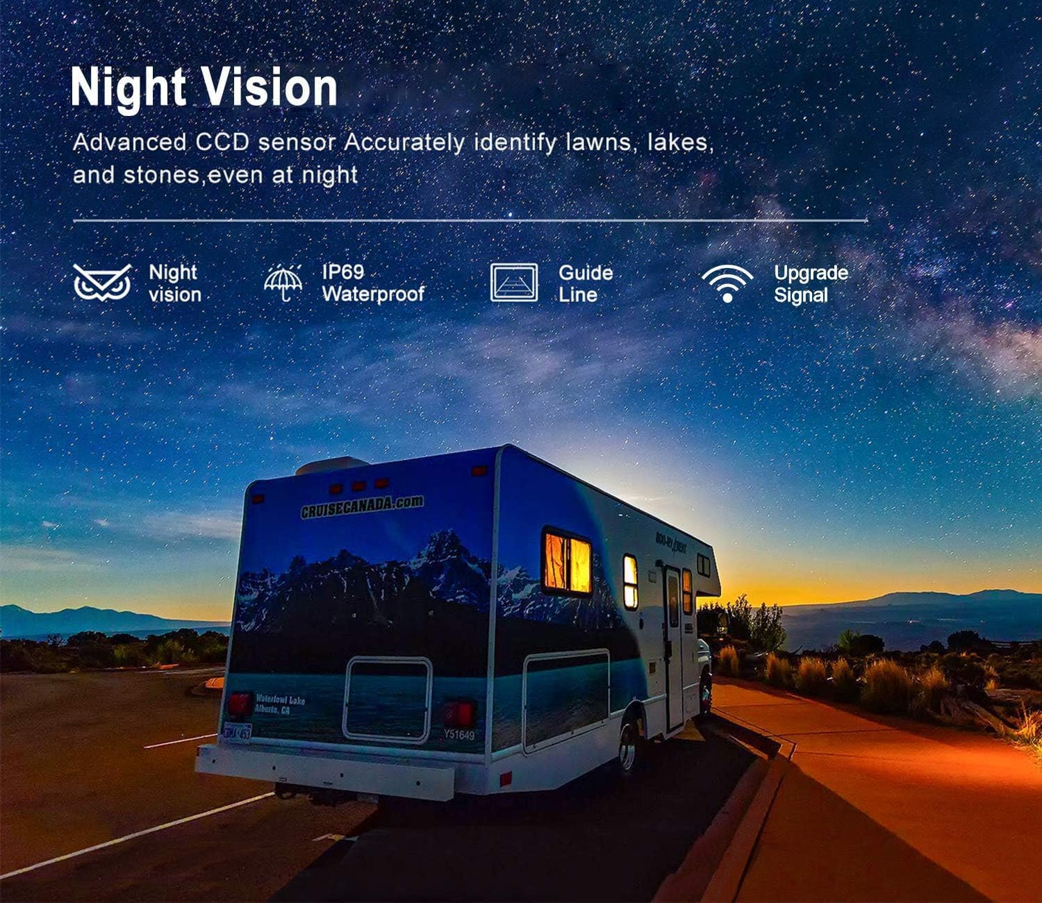 - 🔅【Night Vision and IP69 Waterproof】CCD Sensor for Rear Camera.Make the Night Vision Images More Clear and Stereoscopic.Accurately Identify Lawns, Lakes, and Stones even in the Dark.The Camera Outer Casing is Closed with a Metal Gel. Anti-fog and Waterproof.