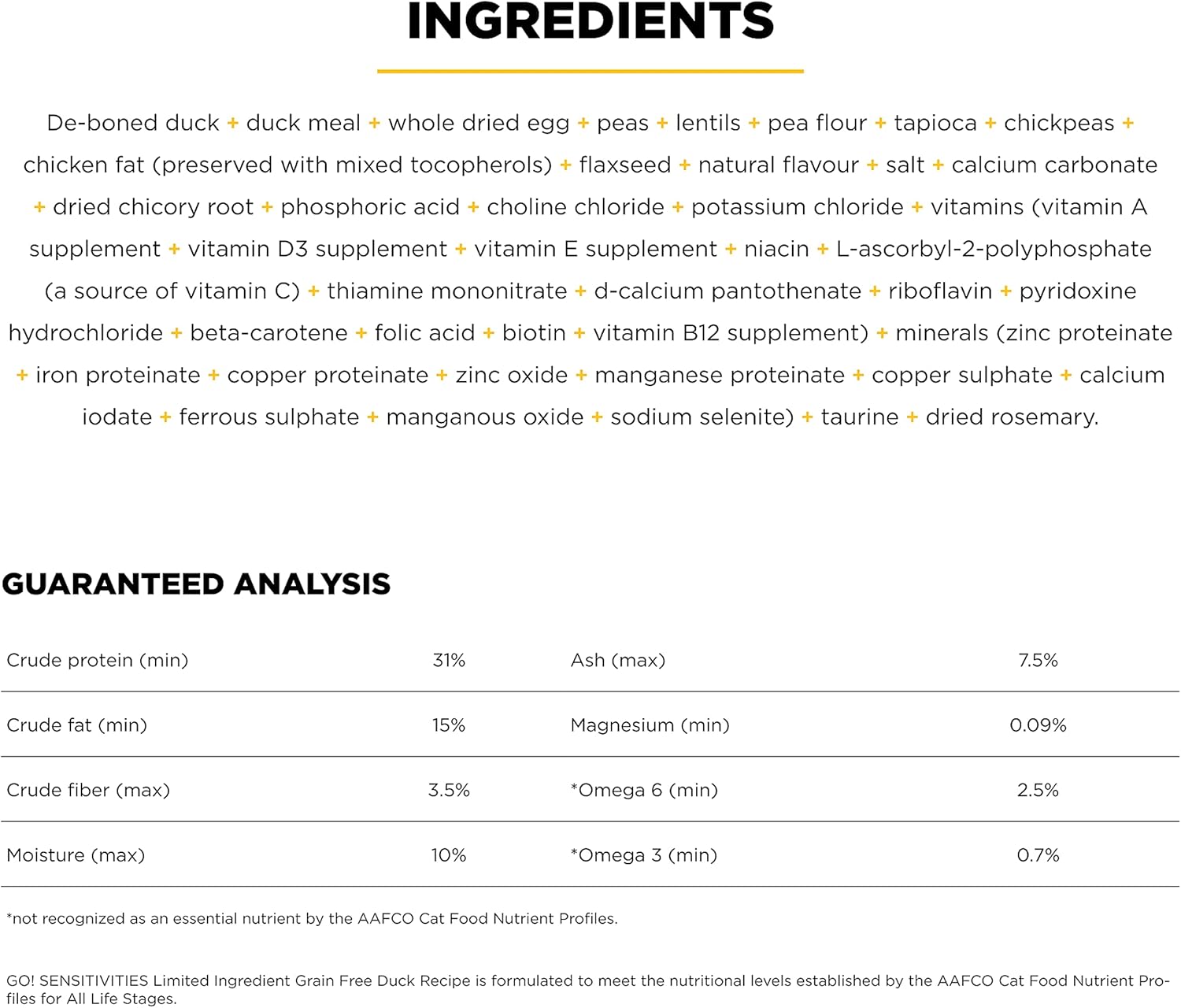 Go! Solutions Sensitivities Limited Ingredient, Grain-Free Dry Cat Food, Duck Recipe for Sensitive Stomach, 8 lb Bag