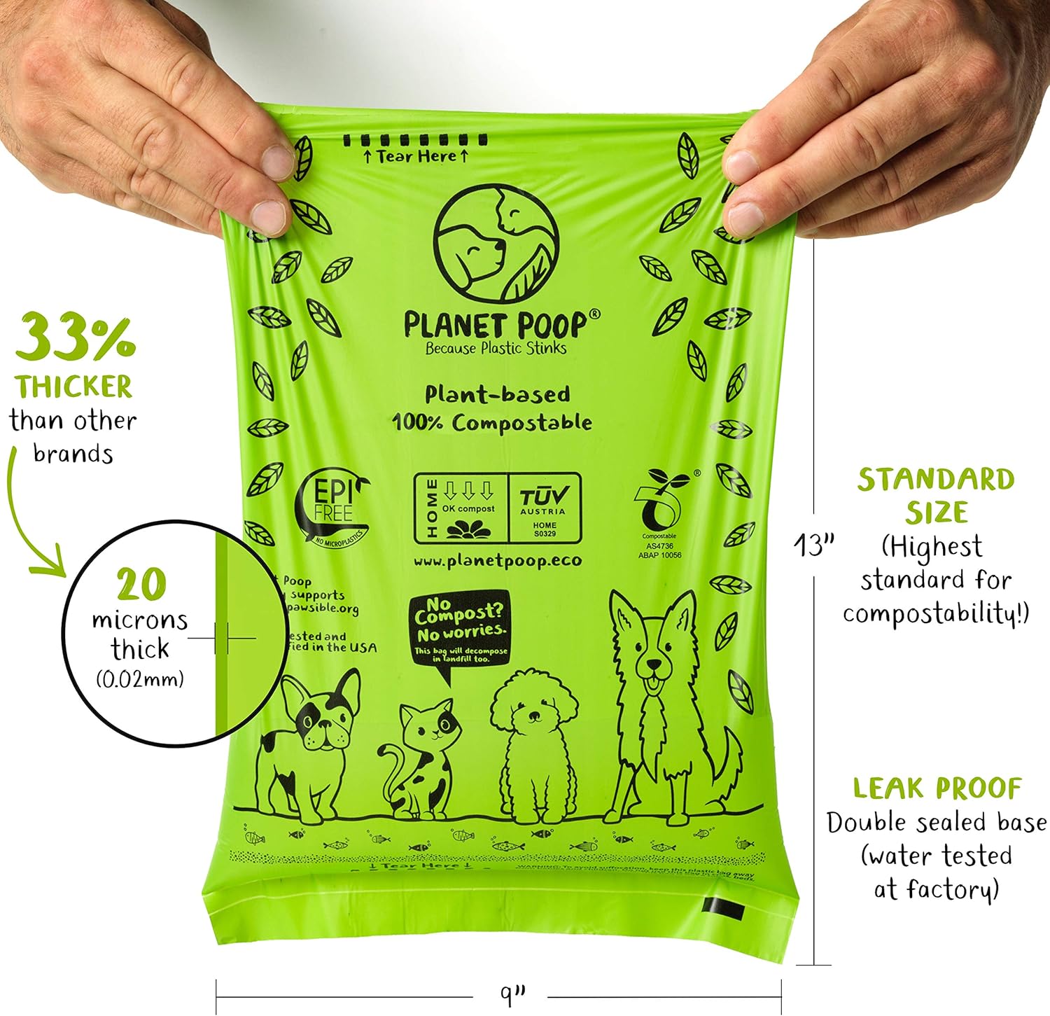 - β TOP RATED DOG POOP BAGS! & Certified Compostable (TΓV AUSTRIA Home Compost Certified to be of ASTM D6400 and EN 13432 standards)