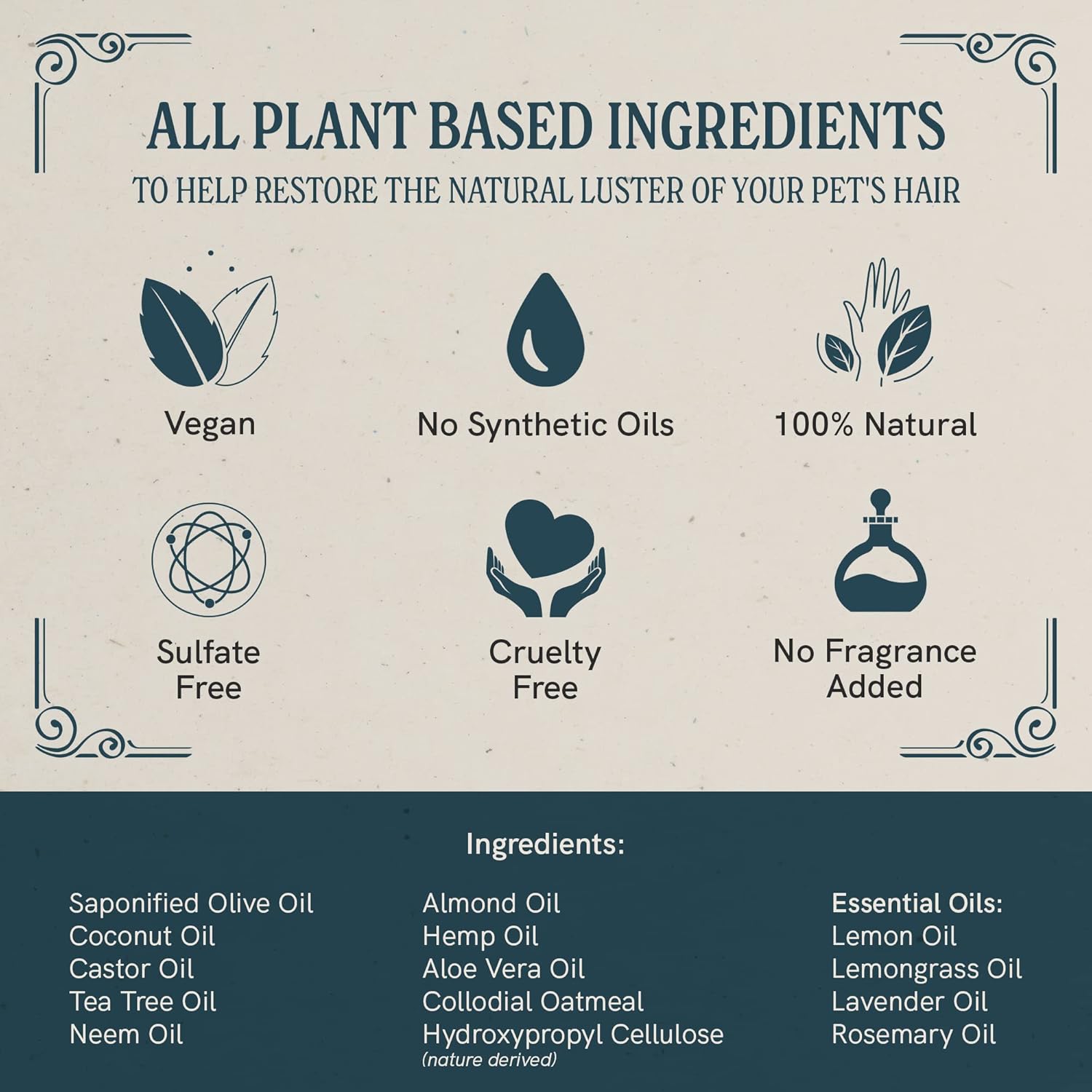 - Powered by Clean, Botanical Ingredients - Made with pet-safe ingredients like Aloe Vera, Almond Oil, Colloidal Oatmeal, and calming essential oils, this non-GMO dog shampoo hydrates and refreshes without synthetic additives or harsh ingredients.