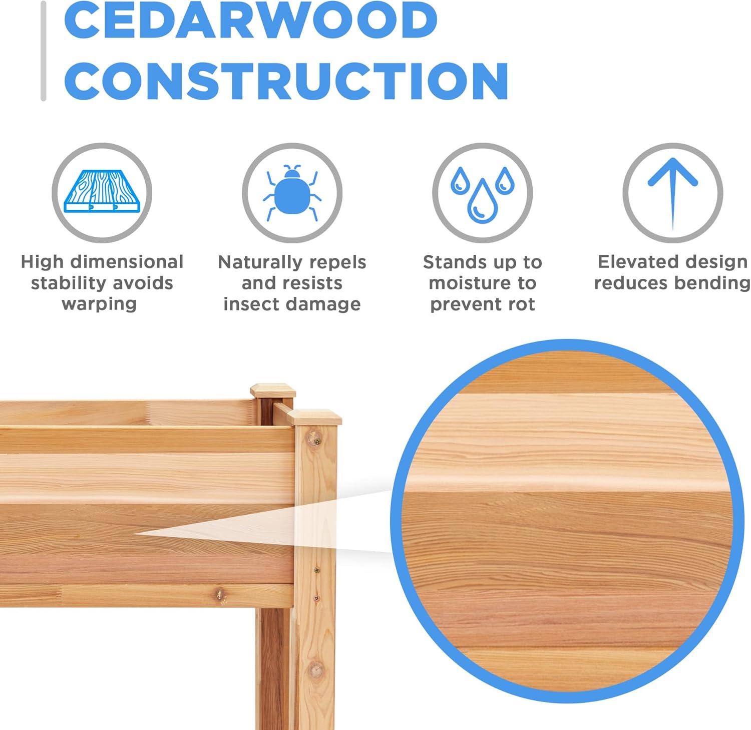 - COMFORTABLE RAISED DESIGN | The Comfortable Raised Design Of This Cedar Raised Garden Bed Makes Planting Easy And Accessible, Reducing The Need To Bend Or Kneel. Built From Durable Cedar, These Cedar Planters Are Perfect For Herbs, Vegetables, And Flowers, Offering One Of The Best Raised Garden Beds Outdoor For Style And Function.
