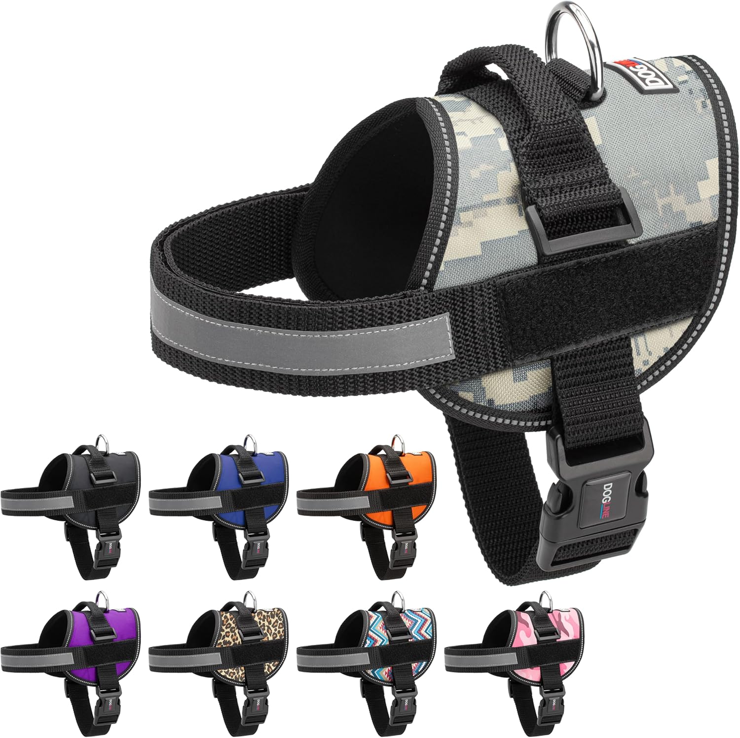 Dogline Dog Harness, Reflective No-Pull Adjustable Vest with Handle for Walking, Training, Breathable, No - Choke Harness for Small, Medium or Large Dogs Room for Patches Girth 15 to 18 in Urban Camo