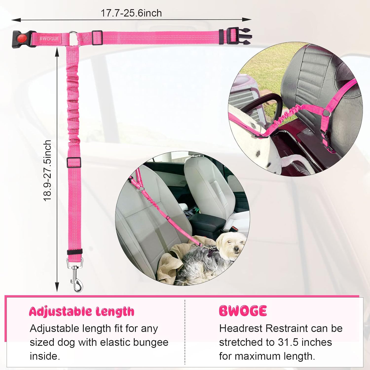 BWOGUE 2 Packs Dog Cat Safety Seat Belt Strap Car Headrest Restraint Adjustable Nylon Fabric Dog Restraints Vehicle Seatbelts Harness