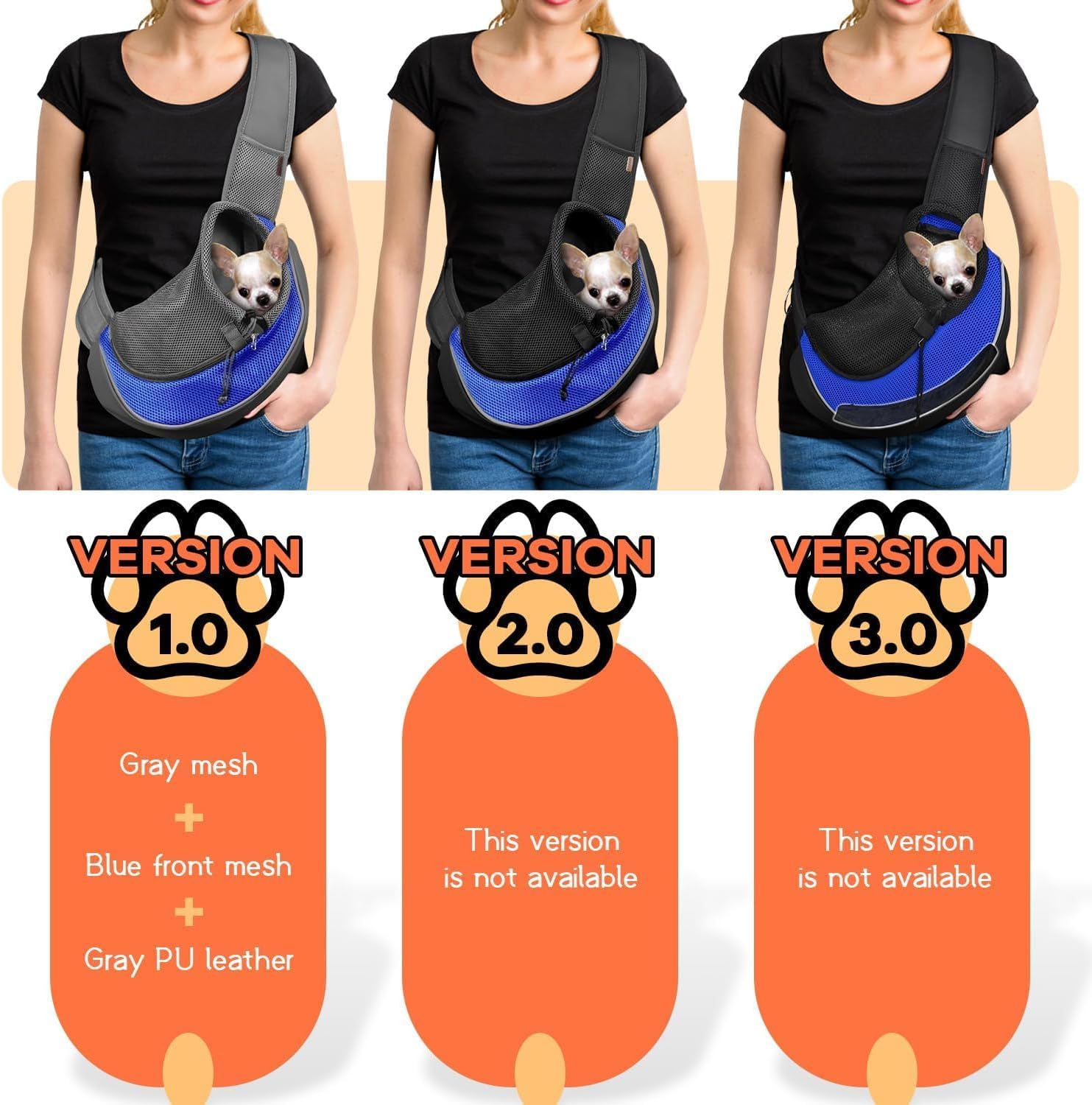 YUDODO Pet Sling Carrier for Small Dogs & Cats – Hands-Free Puppy Carrier with Safety Hook, Large Zipper Pocket, Soft Breathable Mesh, Adjustable Strap & Reflective Strip (Blue 1.0 L)