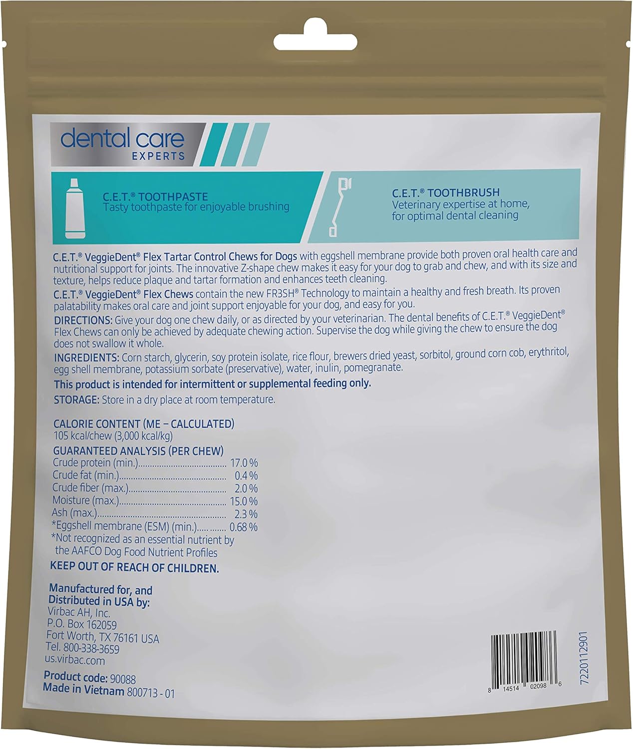 Virbac C.E.T. VEGGIEDENT Flex Tartar Control Chews for Dogs - Large