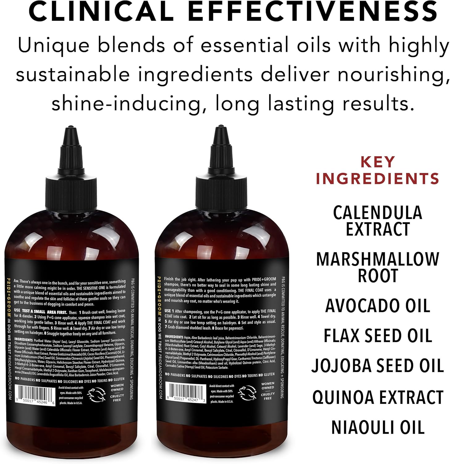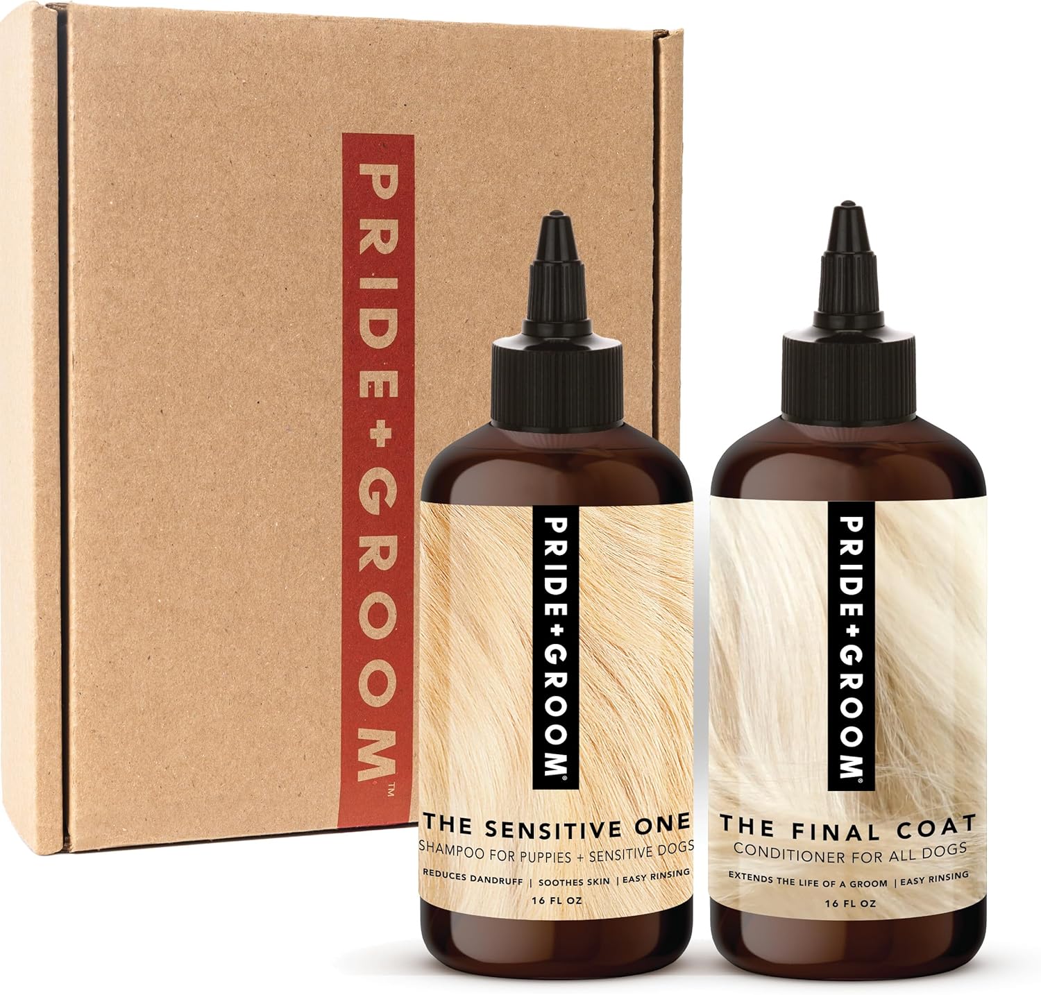 - PRIDE+GROOM BOX SET: Beautiful gift box that includes THE SENSITIVE shampoo and THE FINAL COAT conditioner packed with essential oils & gentle, soothing ingredients for sensitive coats and skin.