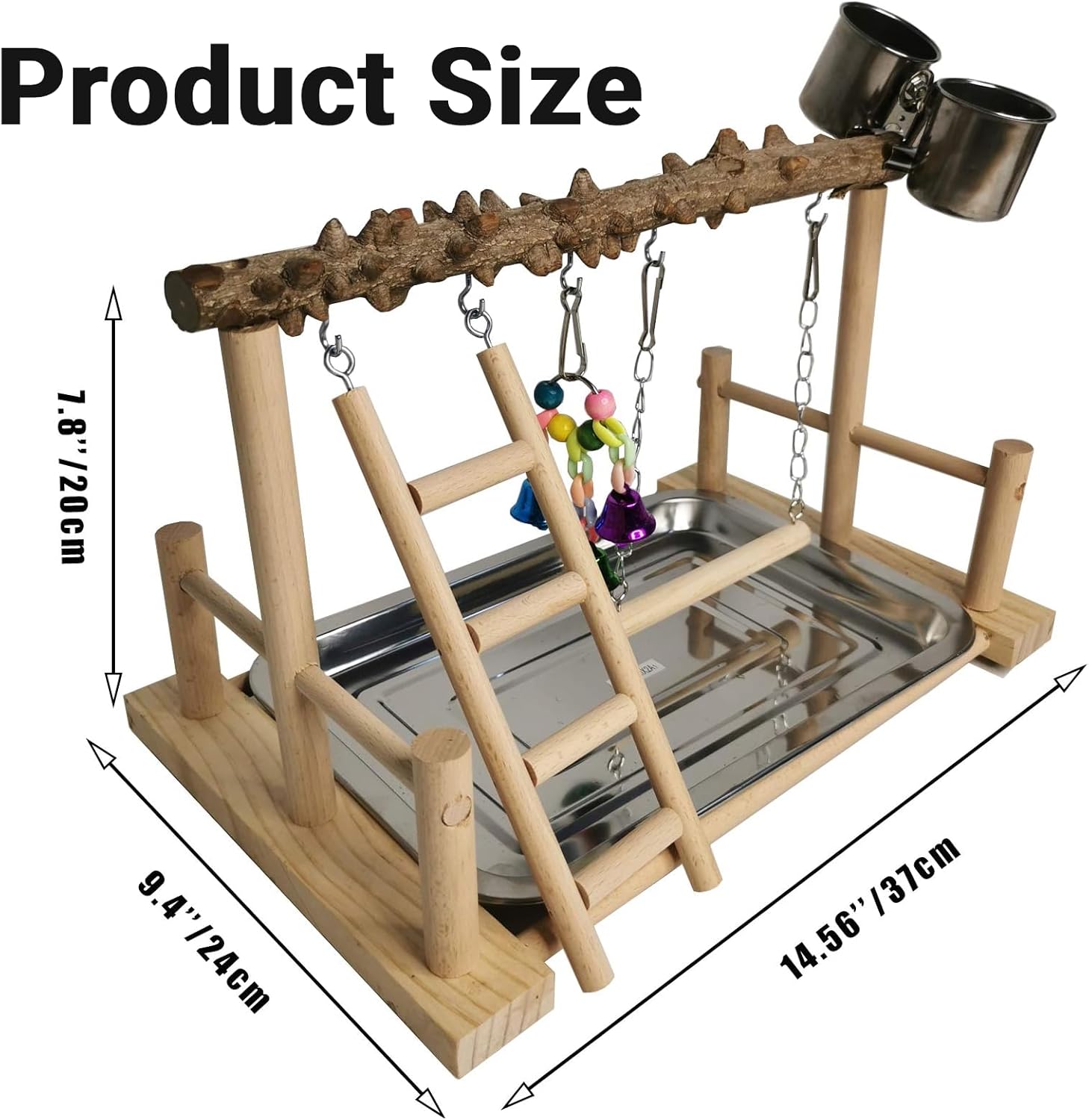 Hamiledyi Parrot Playground Bird Playstand Wood Exercise Play Perch Exercise Gym with Feeder Cups Toys Cockatiel with Ladder Hanging Swing for Pet Conure Lovebirds Life Activity Center Training Stand