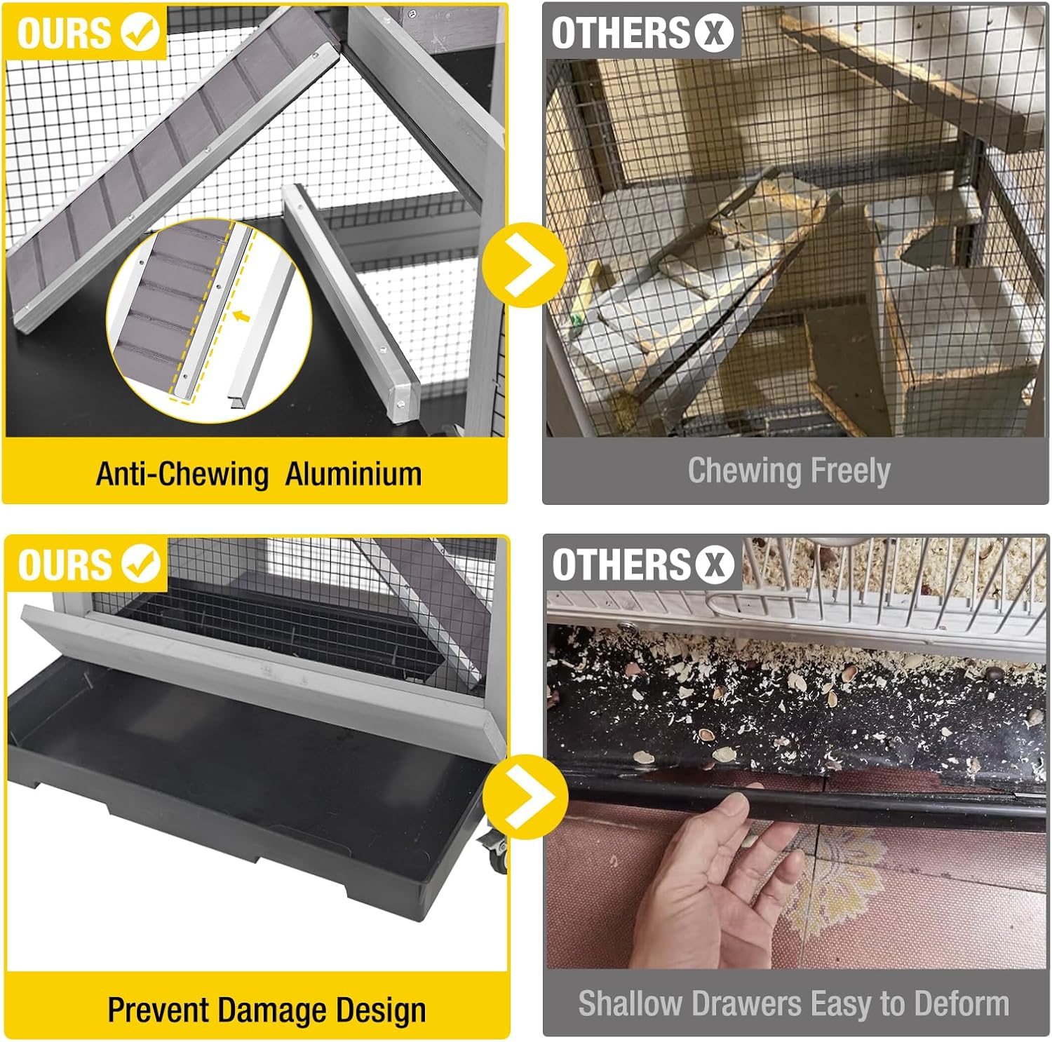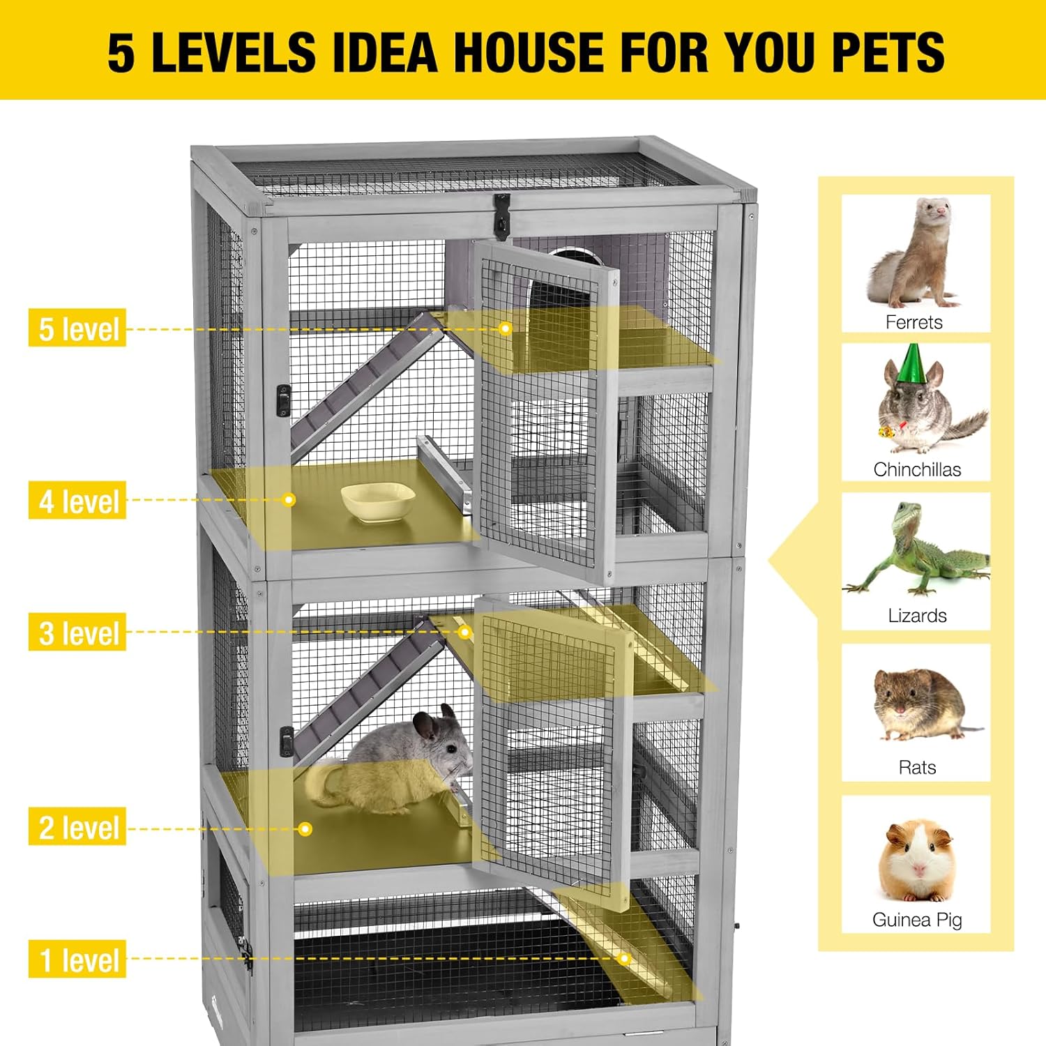 - Upgraded Deluxe rat cage comes with 5 Levels connect with 4 ramps provides spacious room for exploring and climbing, the small resting house making much fun for your pets