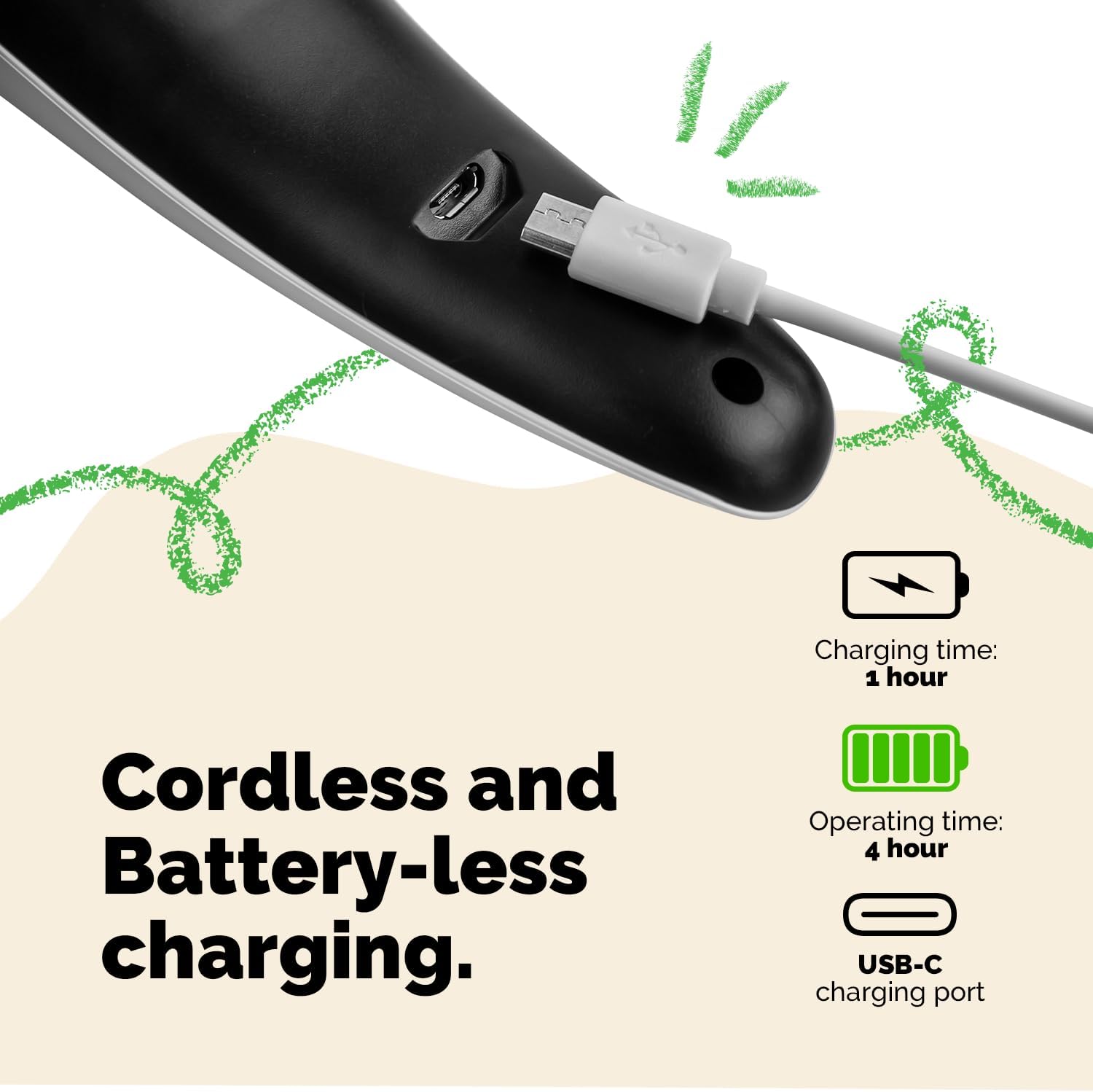 - Portable, USB-Rechargeable, Long Operating Time: Take the portable and ergonomic pet nail grinder on the go! Charge up in just one hour and you will have operating time for over 4 hours. Easy to handle, lightweight and long-lasting, it is the perfect electric dog nail file for busy pet parents.