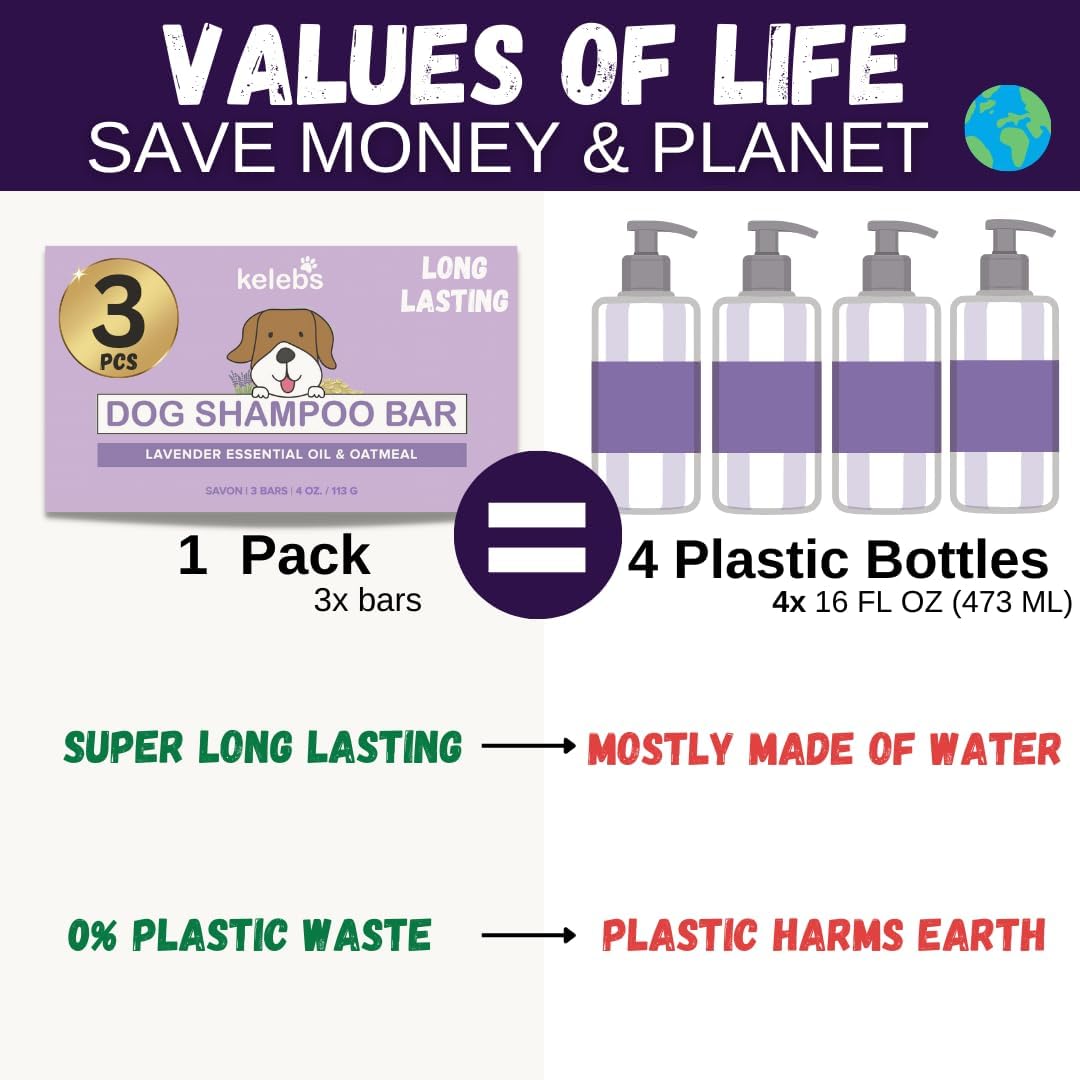 Kelebs Dog Shampoo | Allergies and itching | Dog Shampoo for Sensitive Skin | All Natural Dog Soap Bar with Lavender Oil & Oatmeal | No Plastic Vegan | 3PCS