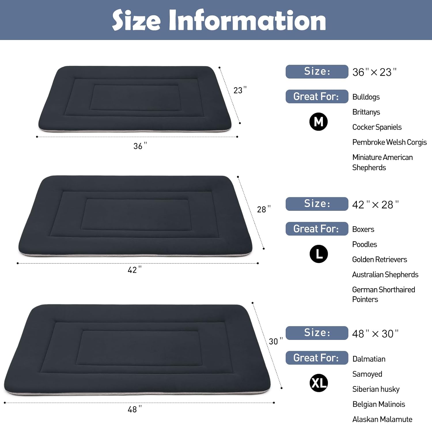 - Premium Material Large Dog Bed: Soft fleece and plush material surface makes it soft gentle feels and PP Fiber inner makes it durable for long time use. A good crate pad mat for small to large dogs
