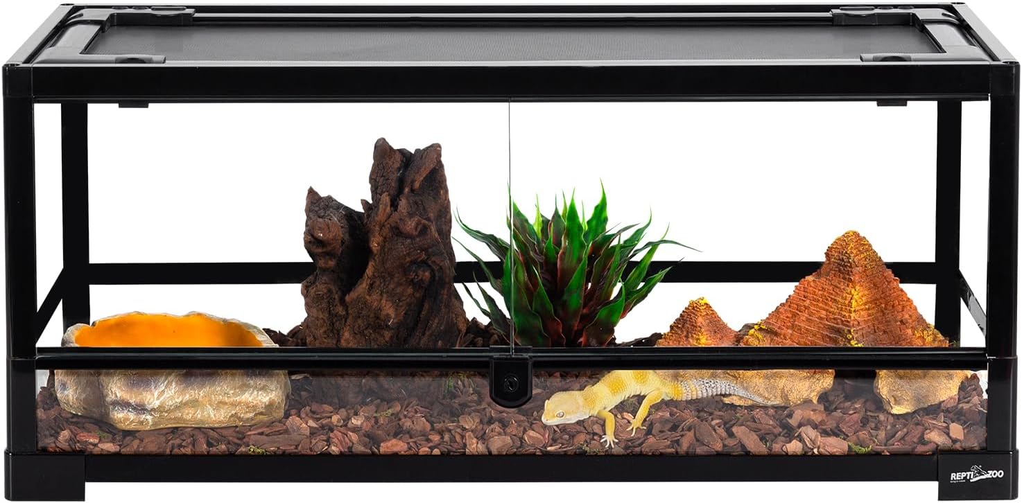 REPTI ZOO Glass Reptile Terrarium 20 Gallon, Front Opening Reptiles Tank 30" x 12"x 12" for Reptile Pets Gecko Lizard Snake, Top Screen Ventilation Escape Proof Lid
