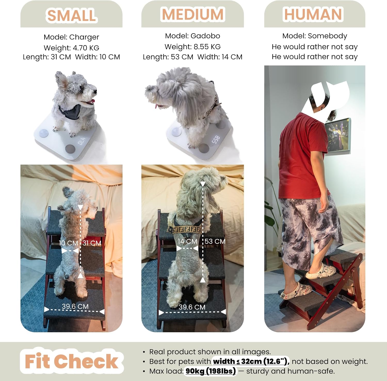 MEWANG Wooden Pet Stairs/Pet Steps - 3-in-1 Foldable Stairs & Ramp for Tall Beds and Cars - Portable Dog/Cat Ladder Up to 220 Pounds - for Small and Older Animals(Brown) (31.5" L x 17.2" W x 25.0" H)