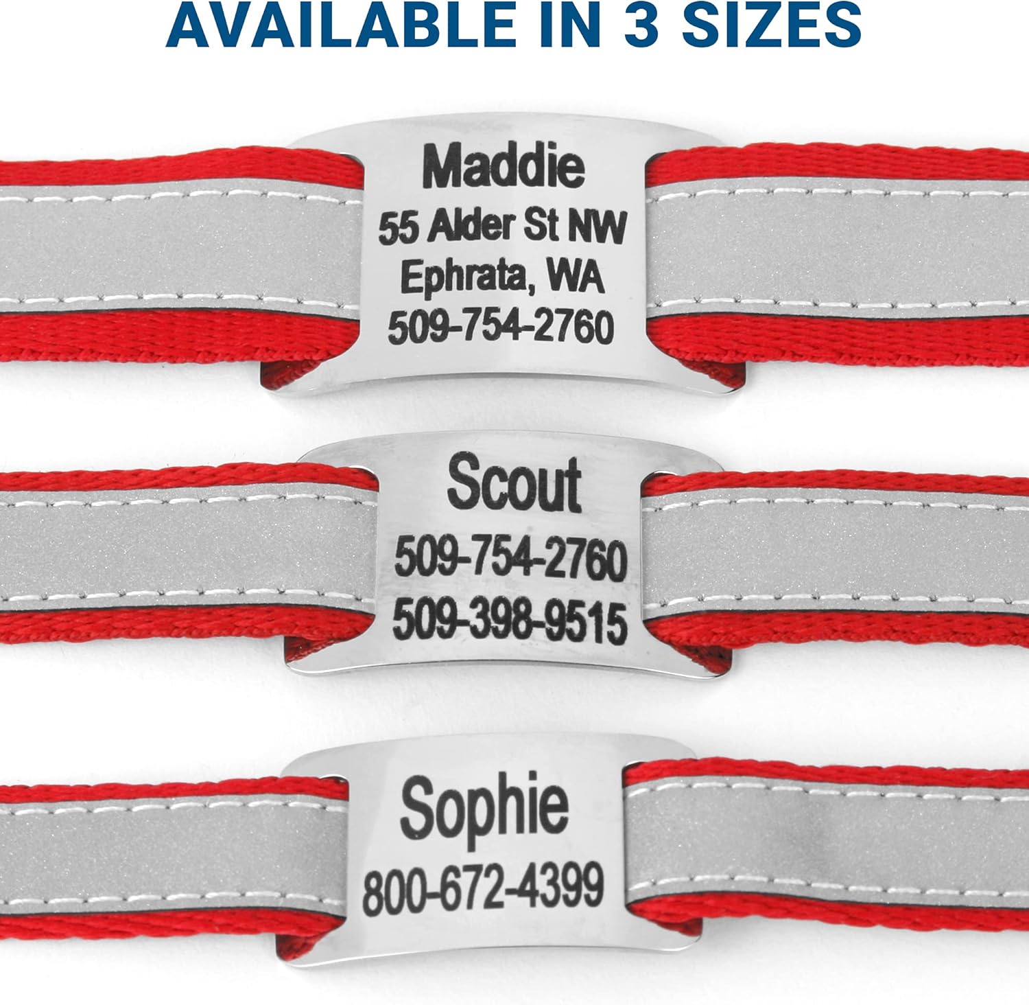 GoTags Reflective Personalized Dog Collar with Nameplate, Adjustable Dog Collar with Custom Engraved Steel Slide On Pet ID Tag, Silent, No Noise Dog Tag for Large Medium or Small (Red, Small)