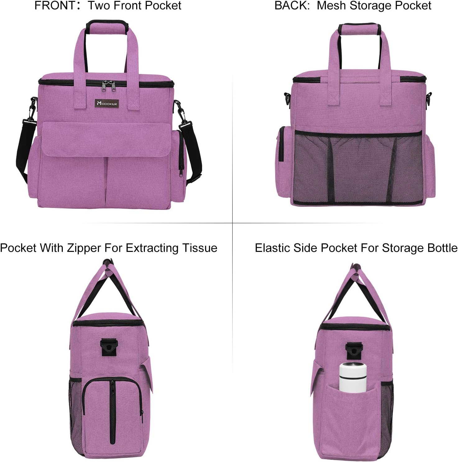 Modoker Dog Food Tote Bag, Airline Approved Pet Gear Travel Set Portable Diaper Accessories Organizer with 2 Food Storage Containers, 2 Collapsible Bowls, 1 Feeding Mat (Pink)